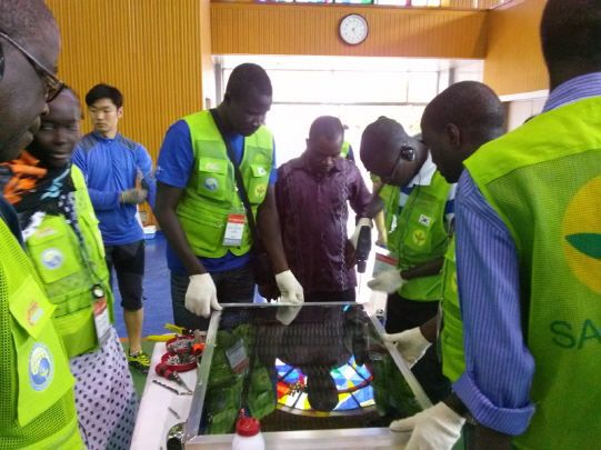 경운대 ‘새마을 연수’ 적정기술 아카데미 handzat / 2015-06-13 지난 6월 5일 경상남도에 위치한 경운대학교에서 외국인 분들을 대상으로 하는 적정기술 아카데미에 참여하였습니다. 아프리카, 인도 등 여러 나라에서 오신 마을 지도자분들과 함께 하는 시간이었는데요. 영어에도 익숙치 않은 분들이 많아 의사소통에 어려움이 있었지만, 적정기술을 배우고 실천하려는 의지만큼은 최고였던 워크숍이었습니다.