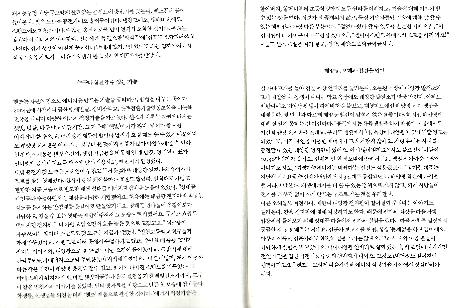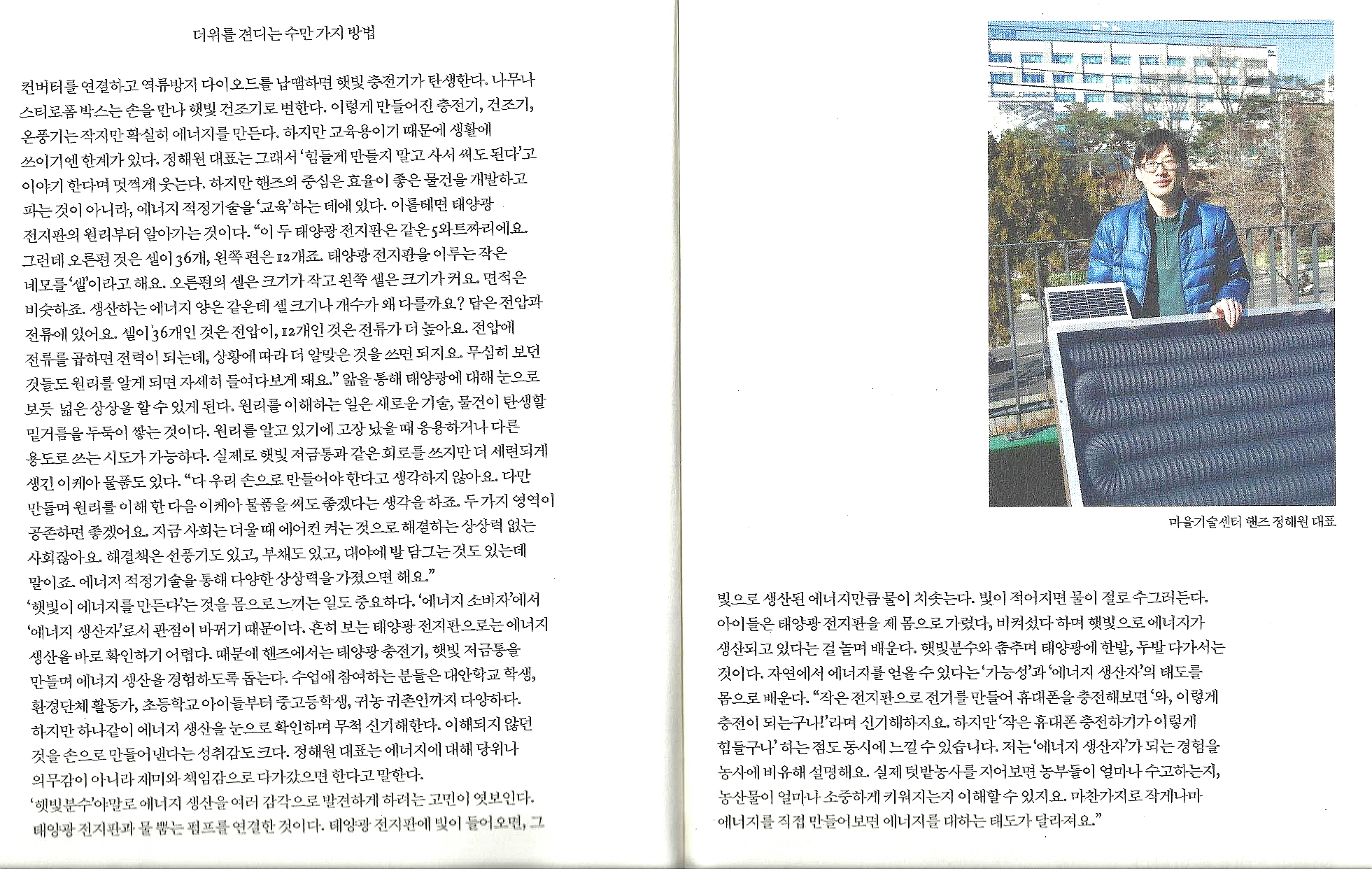 권효연기자가 제천간디학교 졸업생이라 더 뜻깊었습니다. 이번호가 '햇빛발전' 특집이라 저에게도 도움이 되는 글이 많네요.