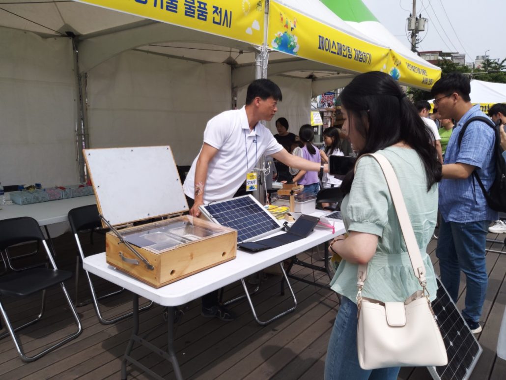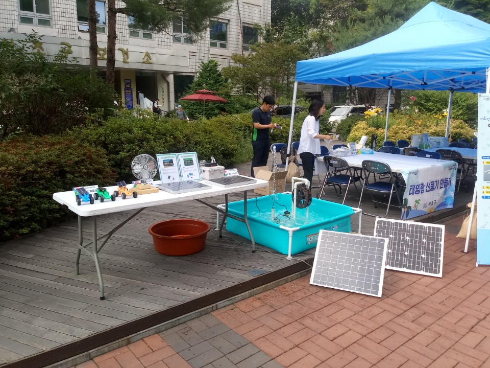 6월 27일과 28일에는 서초구청의 에너지장날 행사에 핸즈의 햇빛분수와 햇빛물레방아를 전시했습니다. 그리고 독립형태양광충전기와 햇빛선풍기도 태양광에너지에 대해서 쉽게 설명하는 교구로 함께 납품했습니다.