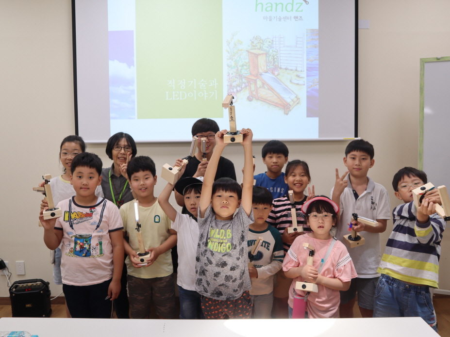 6월 29일 토요일에 해원샘은 인턴인 지연이와 함께 안산에 가서 LED스탠드 만들기를 진행했습니다. 제법 긴 시간이었는데, 초등학생들이 이론강의에도 관심을 보이고, 납땜에도 흥미를 보여서 즐겁게 진행한 워크숍이었다고 합니다.