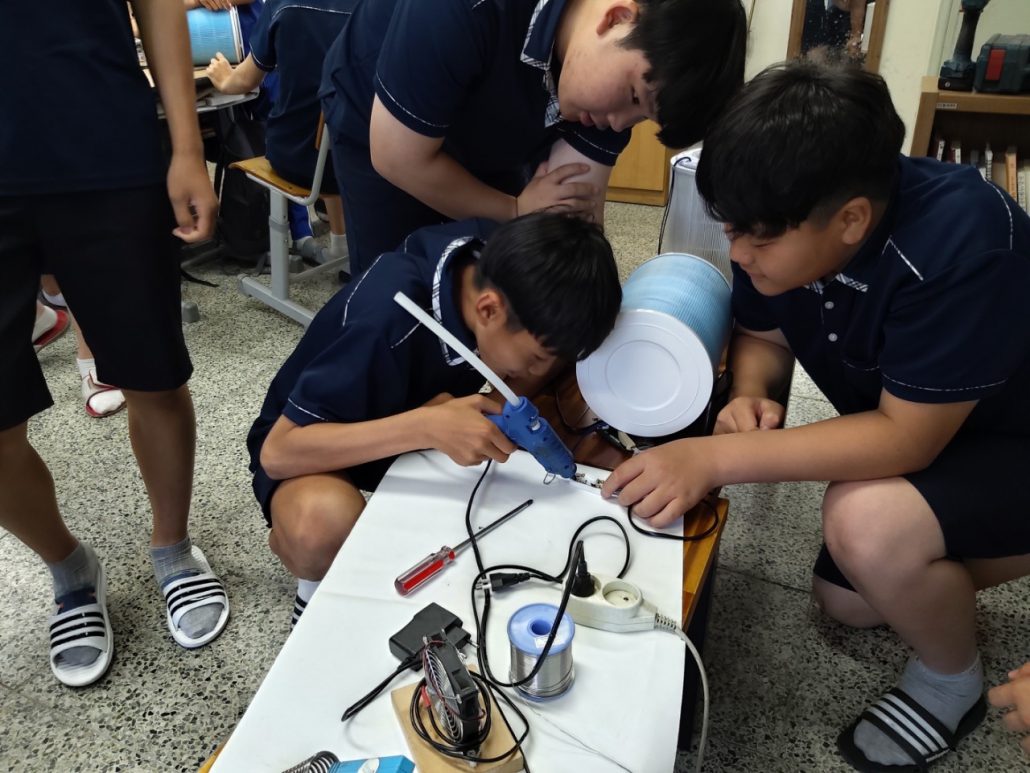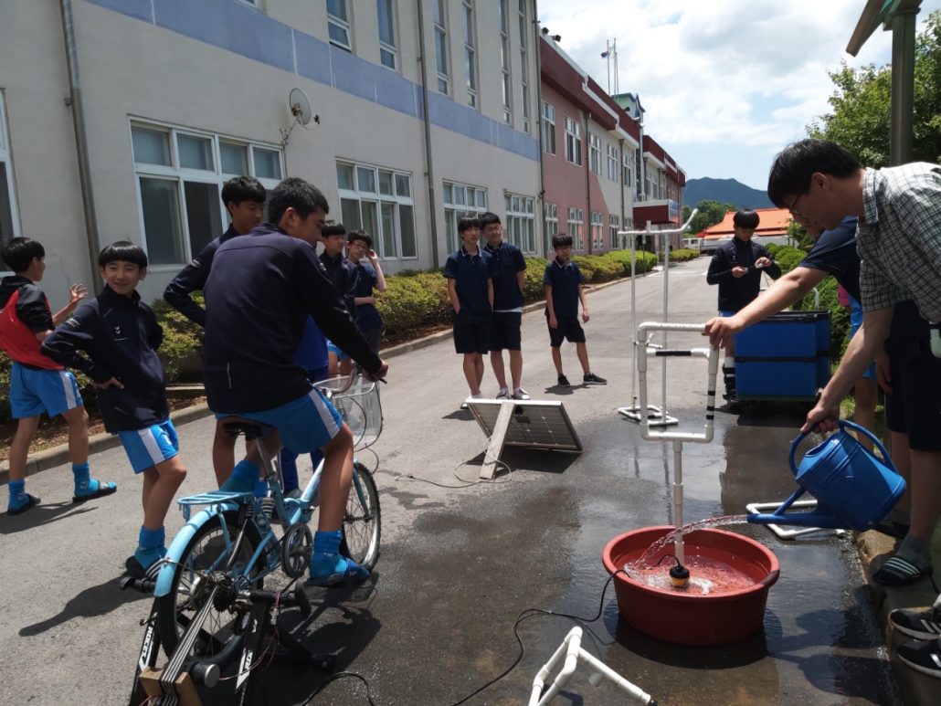 6월 4일, 11일, 12일에는 강화도에 있는 ‘동광중학교’에서 워크숍을 진행했습니다. 4일에는 깡통스토브와 태양광자동차. 11일에는 햇빛분수와 LED스탠드, 12일에는 각종 키트와 공기청정기 만들기 워크숍을 진행했습니다. 학교가 그리 크지 않았고, 학생들이 재미있어 하고 관심도 많았기 때문에 저 역시 즐겁게 했던 워크숍이었습니다. 그리고 덕분에 강화도도 구경도 하고 강화도음식도 맛있게 먹을 수 있었답니다.