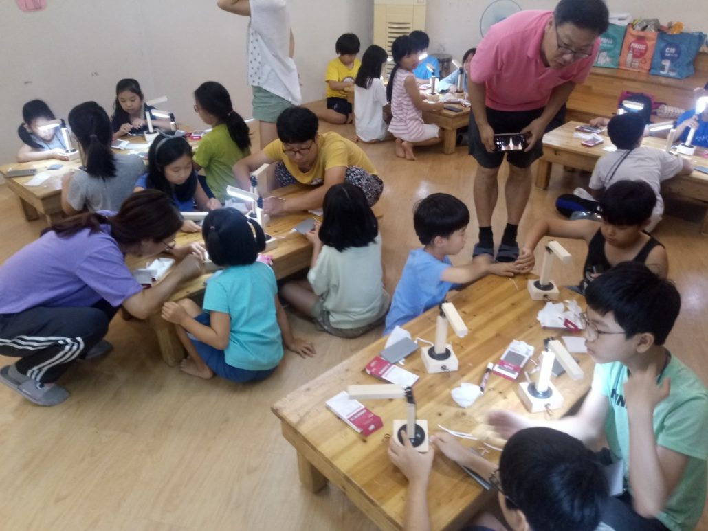5일, 12일, 19일에는 7월부터 했던 어울초등학교 방학프로그램을 진행했습니다. 5일에는 핸즈에서 분수를 만드는 것을 했고, 12일에는 LED스탠드, 19일에는 태양광자동차와 독립형태양광 만들기를 진행했습니다. 지난 달까지 합치면 총 4번 수업을 한 거네요! 처음부터 약간 과다한(?) 관심과 궁금증을 가지고 있는 친구들이었는데, 끝까지 재미있게 해줘서 참 좋았습니다. 19일에는 저학년을 대상으로 LED스탠드 만들기를 한번더 하기도 했습니다.