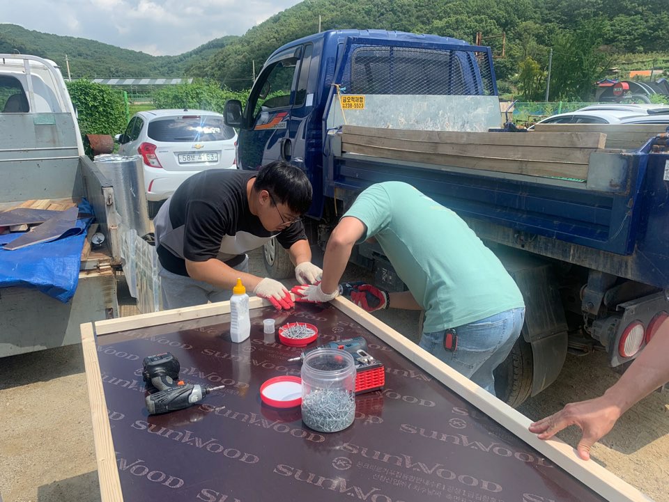 안녕하세요! 핸즈 박범준입니다. 덥고 더웠던 8월이 끝나고 9월이 되었습니다. 9월이 되니 더위도 한풀 꺾이는 것 같네요. 이제 야외작업도 할 만한 일이 될 것 같습니다^^ 하하 8월은 은근히 비가 많이 왔던 것 같기도 하고… 아무튼 비가 와서 나무가 젖는 사건도 있었고 고생을 좀 했습니다. 허허 그래도 또 많은 사람들을 만날 수 있어 좋았습니다. 8월 소식 시작합니다!
