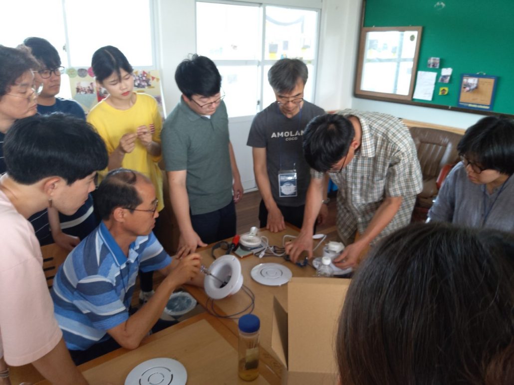 8일에는 작년, 재작년에도 했었던 교사대학에 참여했습니다. 이 날은 서산 샨티학교에서 진행했는데, 오전에는 태양광교실을 진행했고, 오후에는 미세먼지 측정기와 공기청정기를 만들었습니다. 시간이 아침부터 저녁까지라 길었지만 대부분 대안학교 선생님들이고, 관심 있으신 분들이셔서 의미있게 진행한 워크숍이었습니다.