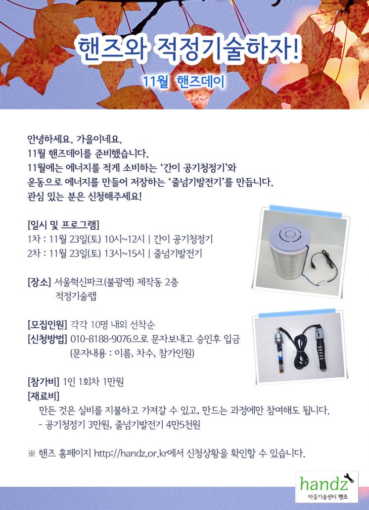 1차 : 11월 23일(토) 10시~12시 | 간이 공기청정기