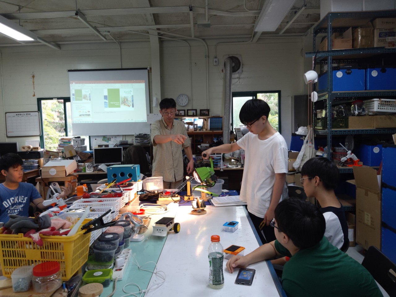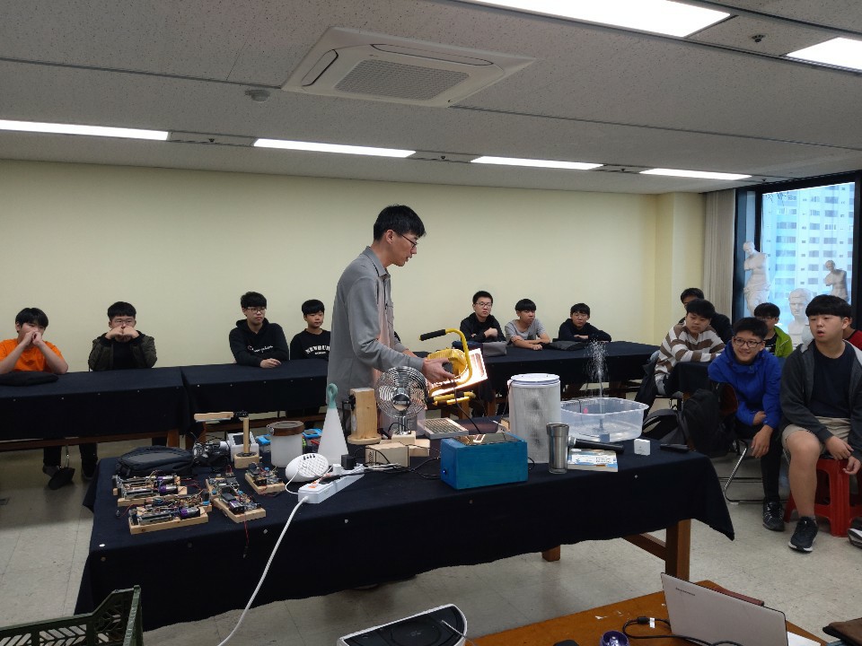 18일 오후에 해원샘은 고양 행신고등학교에서 적정기술에 대한 강의를 했습니다. 과학동아리 친구들이었는데, 즐겁고 활기차게 참여했고, 이후에 멘토링이 필요해서 핸즈를 방문한 친구도 있었다고 합니다.^^