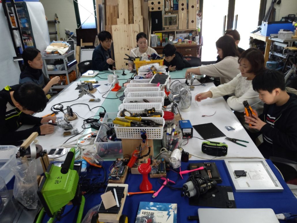 같은 날 저와 정현샘이 핸즈데이를 진행했습니다. 이번 핸즈데이는 태양광충전기, 햇빛저금통 총 2가지 아이템을 만들었고, 정현샘은 햇빛오디오를 만들었습니다. 가족, 개인, 대학원생까지 많은 분들이 와 주셨습니다. 납땜 작업이 들어가기에 처음 하기에는 만들기 쉽지만은 않은데 열심히, 찬찬히 만드시는 모습들이 좋았습니다!