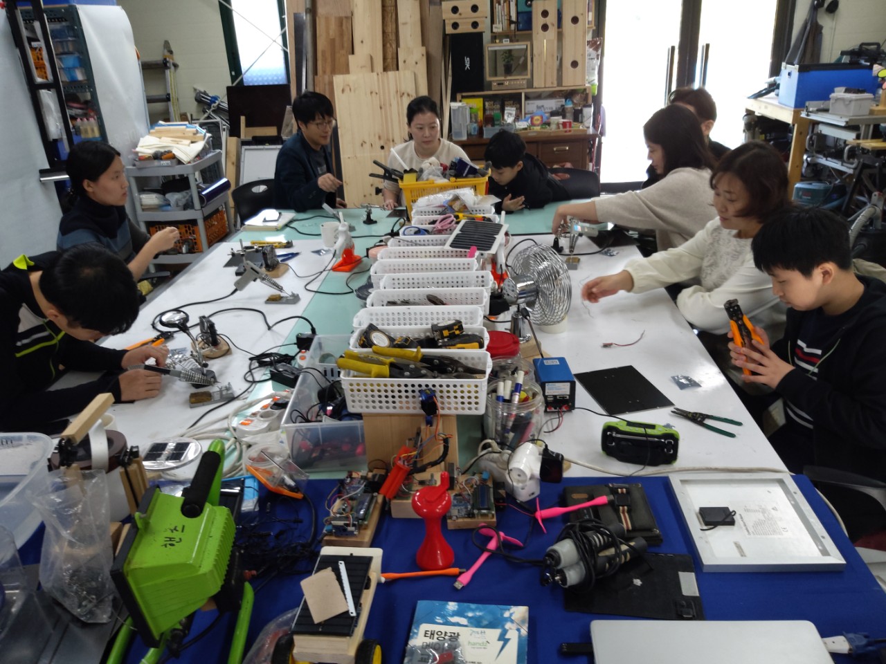 같은 날 오후에는 부천에 있는 ‘산울림청소년회관’에서 가족들을 대상으로 ‘햇빛건조기’ 만들기 워크숍을 진행했습니다. 어린 친구들부터 어른들까지 다양한 연령층이 있었는데요. 못도 박고, 칼도 쓰고 했지만, 다치는 사람 없이 서로 도와가면서 재미있게 만드는 모습이 좋았습니다! 어릴 때 엄마 아빠랑 워크숍 갔던 생각이 나는군요.