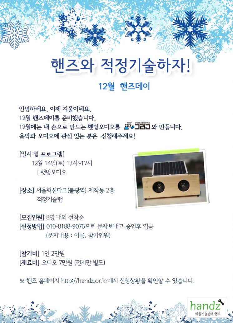 12월에는 내 손으로 만드는 햇빛오디오를 ‘그리고’와 만듭니다.
