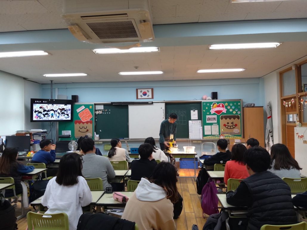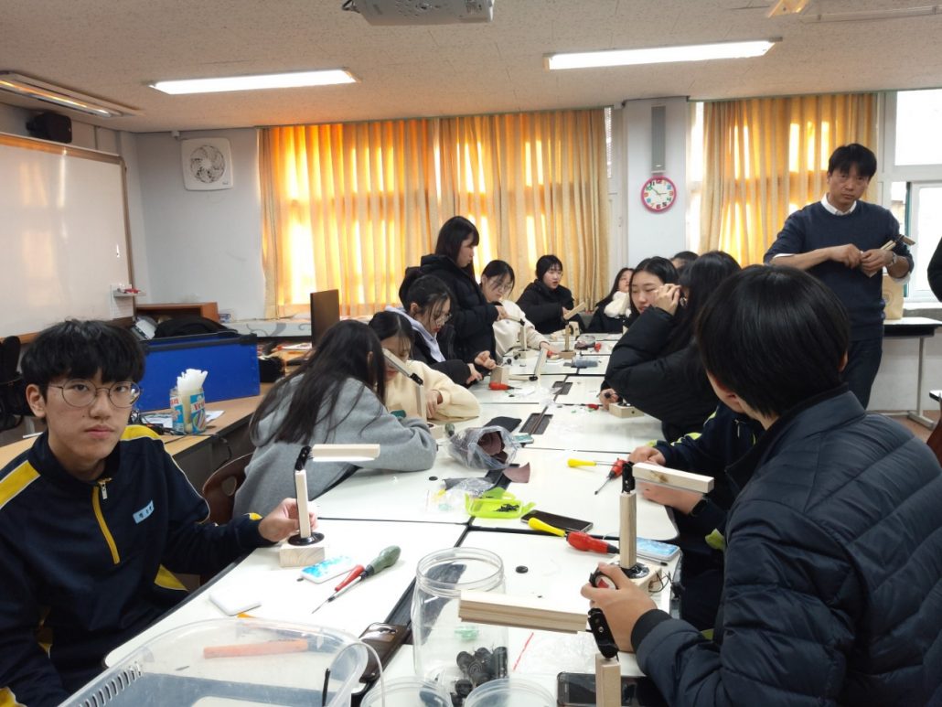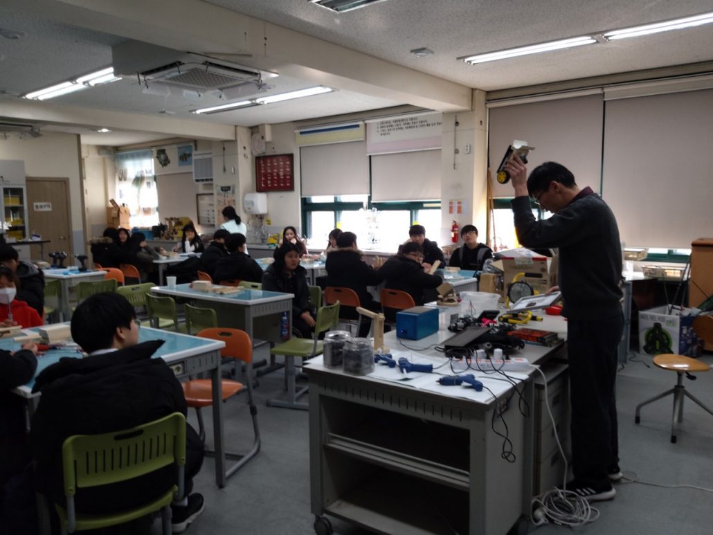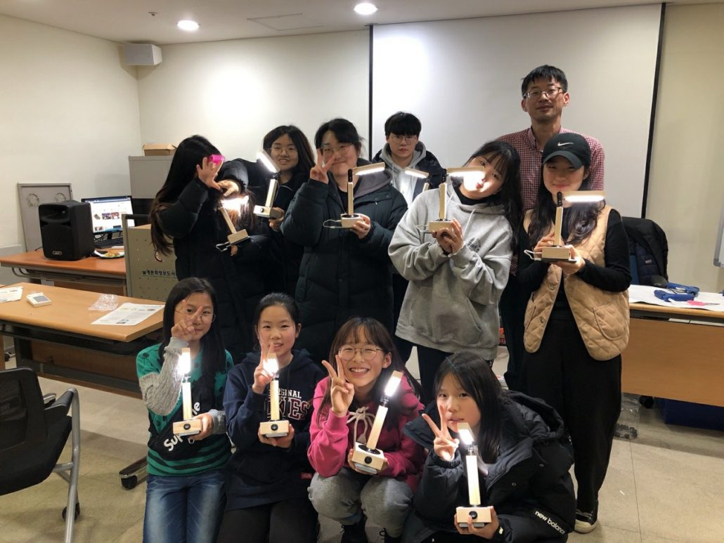 오후에는 바로 성보중학교에서 외장형LED스탠드 만들기 워크숍을 진행했습니다. 점심시간 이후 과학시간이라 친구들이 약간 졸려하는 모습도 있었지만, 점점 만들기를 하며 좋아하는 모습이 좋았습니다! 과학에 관심이 많은 친구들이라 재미있게 진행할 수 있었습니다.