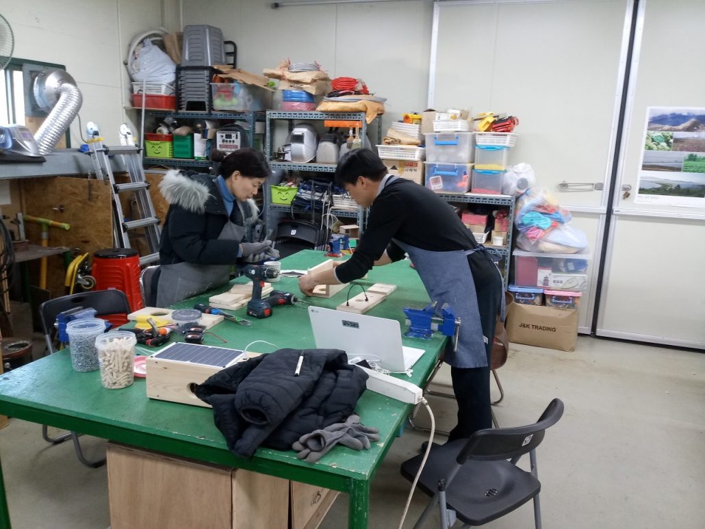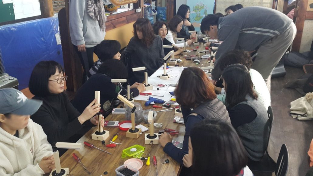 2일. 첫 워크숍이네요! 이 날은 한살림에서 선생님들이 찾아오셨습니다! 원래는 공기청정기와 줄넘기발전기를 만들기로 했었지만, 선생님들의 요청으로 줄넘기는 태양광충전기로 급 변경..ㅎㅎ 워낙에 관심 많으신 선생님들이셨고, 직접 쓰실 것들이라 더 열심히 만드시는 것 같아 좋았습니다. 충전기를 만드시는 선생님이 충전기는 베란다에 놔두고, 전기는 집 안에서 쓸 수 있게 선을 길게 만드셨던 것이 특히 기억에 남네요.