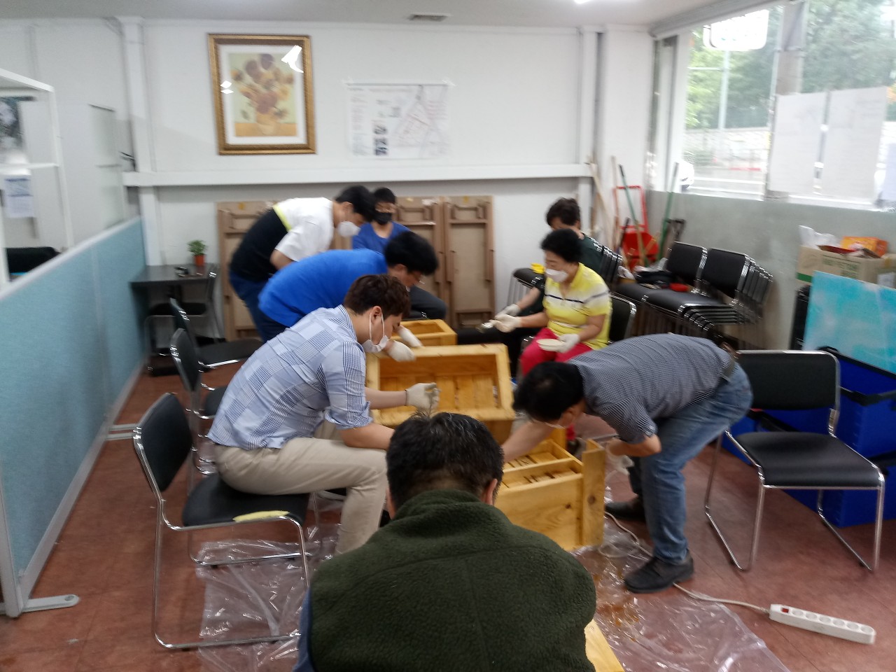 17일, 24일에는 해원샘과 별샘이 팔레트를 이용한 나무 화분을 지역분들과 만들었습니다! 도시재생지역인데, 역시 지역에는 나름의 전문가가 계셔서 저희도 많이 배우면서 함께 진행할 수 있었습니다. 화분이 잘 쓰이면 좋겠네요.