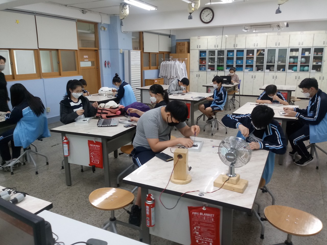 9월 29일에는 해원샘께서 고척고등학교에서 대면수업을 진행하셨습니다! 마찬가지로 에너지를 쉽게 배울 수 있는 키트들을 체험하는 시간을 가졌고, 다음시간에는 LED스탠드를 만들기로 했습니다.