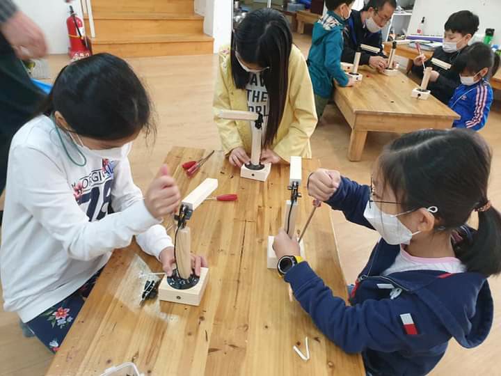 10월 22일, 23일에는 수원 칠보산자유학교에 갔습니다. 유명한 초등 대안학교죠! 22일은 친구들과 함께 에너지에 대해 알아보는 여러 키트들을 체험하고, 햇빛저금통과 LED스탠드를 만드는 워크숍을 진행했습니다! 필터를 이용해 간단하게 만들 수 있는 공기청정기도 만들었죠! 23일에는 정현샘이 세상에서 가장 작은 도서관(도서수납형 의자)을 만드는 워크숍을 진행했습니다. 밝고 활기찬 친구들이었습니다. 질문도 많이 해주고..! ㅎㅎ 재미있었습니다!