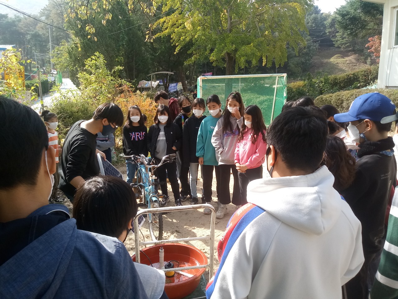 10월 26일과 27일은 산청간디에서 동아리_환경팀과 워크숍을 진행했습니다. 저 혼자 진행한 워크숍이죠! 자전거발전기를 만들고, LED스탠드, 태양광 충전기도 만들었습니다. 만드는 도중 공구가 없어 당황하기도 하고, 자전거 분수 풀장을 설치하느라 삽질도 하는 등 여러 우여곡절이 있었지만, 재미있게 참여해주었고 저 역시 즐겁게 진행했습니다. 덕분에 산청여행을 짧게 다녀왔네요.