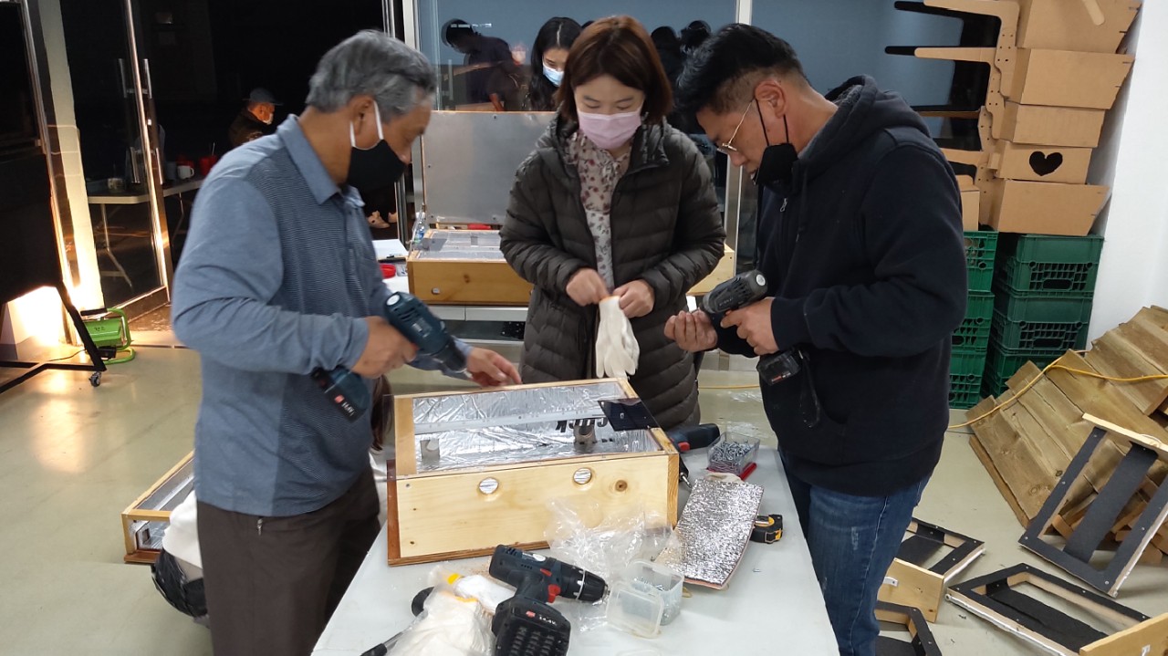 20일 저녁에는 춘천에 갔습니다. 그곳은 바로 춘천사회혁신센터, 춘천의 혁신파크라고 부를 수 있는 이곳에서 나무건조기 만들기 워크숍을 진행했습니다! 저녁 시간대였고, 조금 늦게 시작했지만, 선생님들이 다 기술이… 어마어마하신 분들이셔서… (아니 개인 드릴도 있으셔서…) 잘 만들 수 있었습니다! 춘천이고 저녁 워크숍이라 집에 늦게..(흑) 들어가긴 했지만 즐거운 워크숍이었습니다. ㅎㅎ