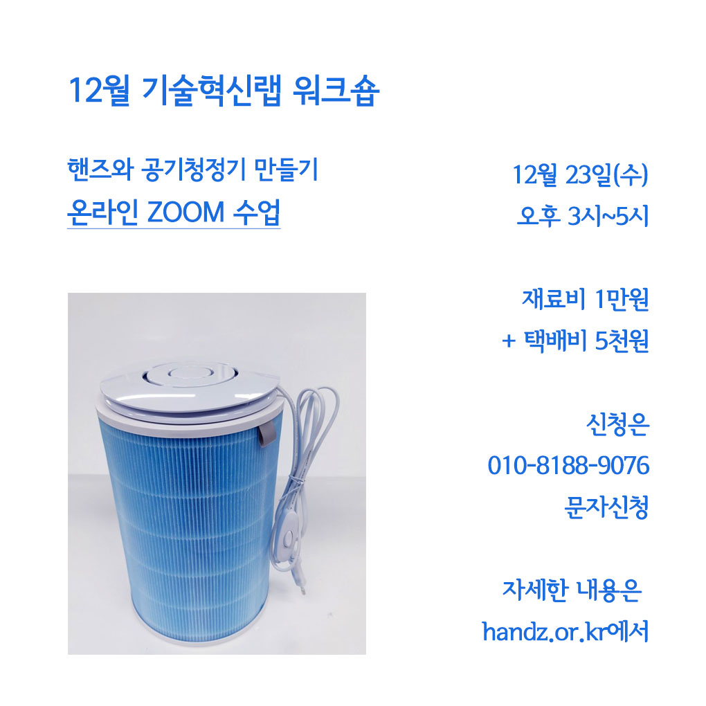 * 일시와 내용 : 12월23일(수) 오후 3시~5시 간이 공기청정기 만들기