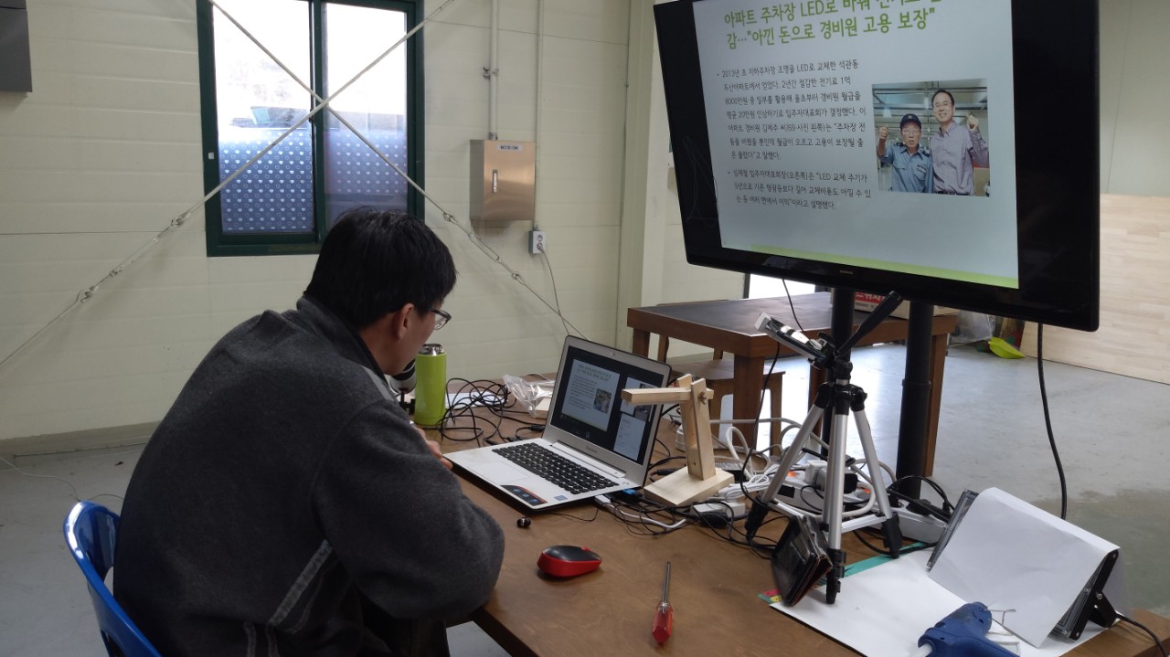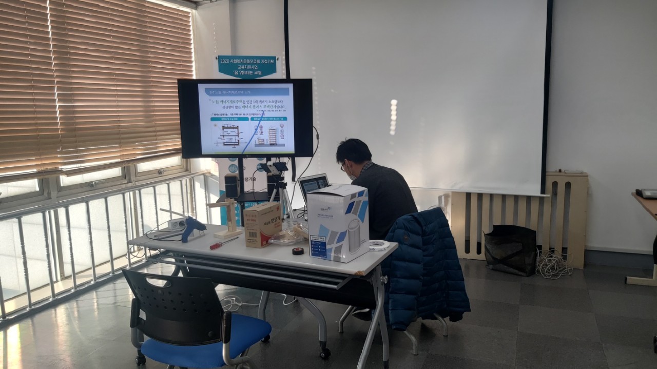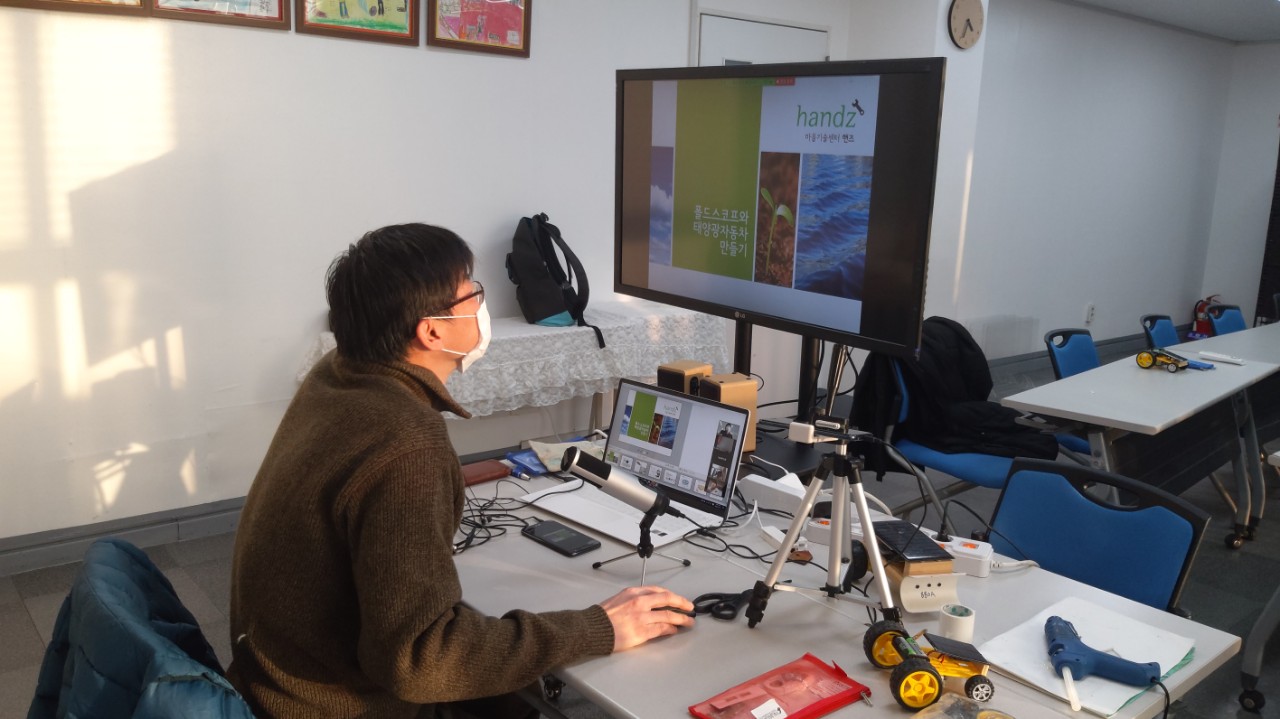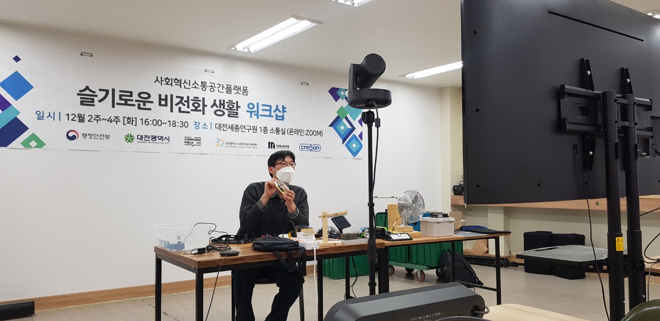 12월 5일, 6일 오후에는 대전에서 진행한 사회혁신한마당의 한 코너로 적정기술교육을 온라인으로 진행했습니다. 초등학생들이 대부분이라서 걱정을 했는데, 잘 참여해주어서 문제없이 이틀간의 온라인교육을 잘 마칠 수 있었습니다.