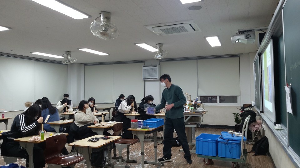 12월 18일에는 구미에 있는 오상고등학교에서 워크숍을 진행했습니다. 참고로 전날 구미로 이동해서 금오산 아래 금오저수지도 구경하고, 오후에는 순천향대 적정기술경진대회 온라인 멘토링도 진행한 후 저녁시간에 오상고 수업을 진행했습니다. 오상고는 지역에 있는 역사와 전통이 있는 학교였습니다. 1951년에 개교한 학교라고 하네요. 여기서는 LED스탠드와 햇빛저금통을 만드는 워크숍을 진행했습니다. 시간이 넉넉하진 않아서 진행하기에 약간 어려운 점이 있었지만 친구들이 다들 잘 만들더라구요…! 덕분에 잘 만들고 이런저런 재미있는 실험도 하고 잘 마치고 저희는 잘 올라왔습니다!
