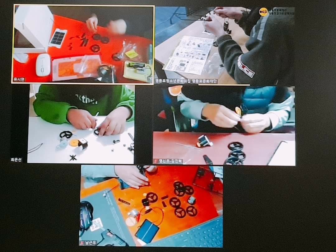 12월 1일, 8일, 15일은 영등포청소년문화의집을 통해 초등학생들과 적정기술 수업을 온라인으로 진행했습니다. 11월에 한번 대면수업을 하고 코로나확산으로 온라인으로 수업을 했는데 모두 잘 참여주었습니다. 인원도 적어 얼굴도 익히고 성향도 알 수 있었다고 합니다.