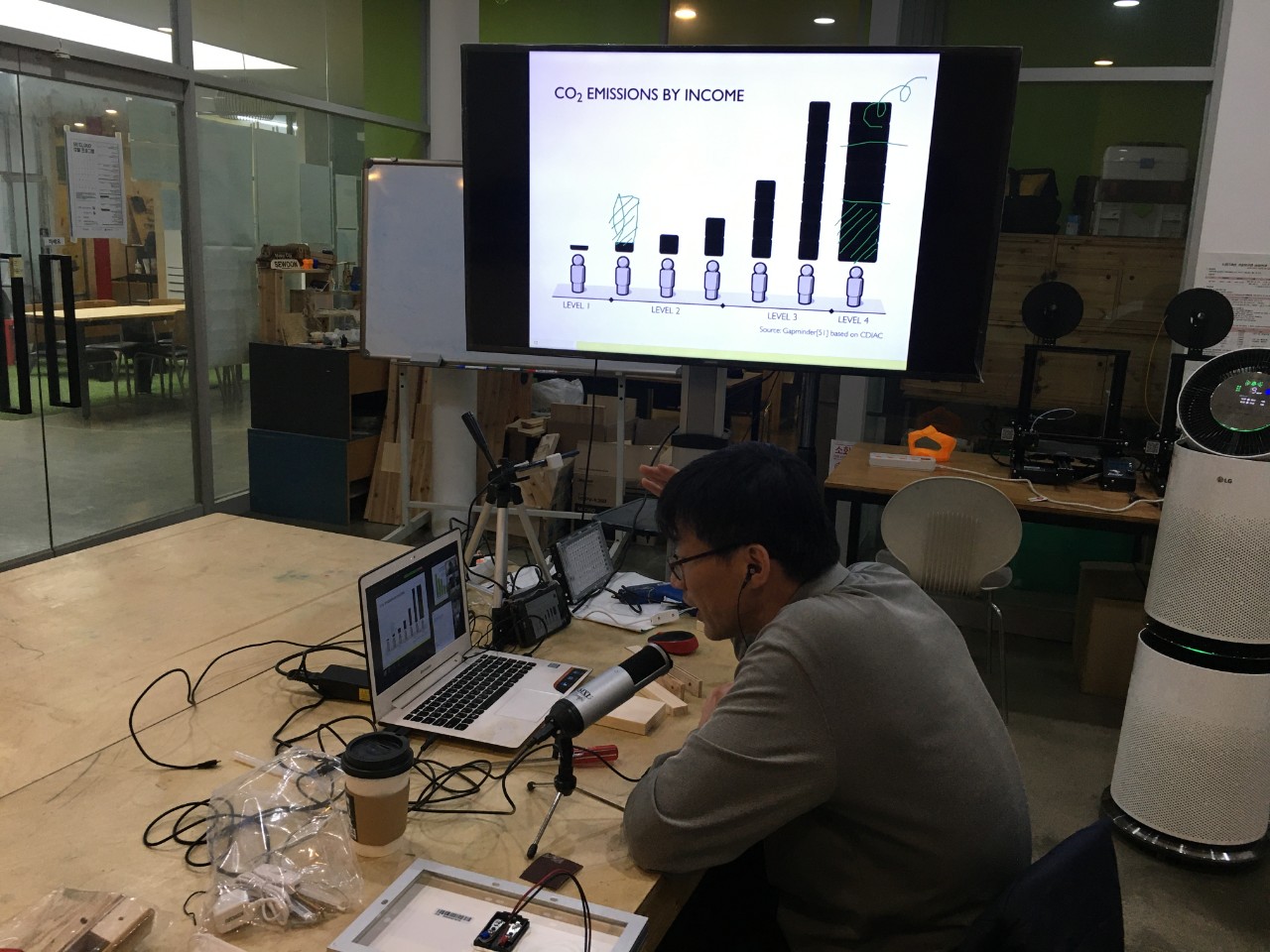 12월에도 세운상가에서 기술혁신랩 프로그램을 진행했습니다. 12월은 코로나 확산과 등으로 인해 대면 워크숍은 없었고 모두 온라인으로만 이루어졌습니다. 9일과 23일에 워크숍을 진행했는데 각각 LED스탠드와 공기청정기를 만들었습니다. 비록 직접 만나서 만든 것은 아니었지만, 이렇게나마 관심있는 분들과 워크숍을 진행할 수 있다는게 참 기뻤습니다. 9일은 속닥하게 진행을 했고, 23일은 20여명이 참여해서 조금은 분주하게 진행하며 올해 일정을 마무리했습니다.