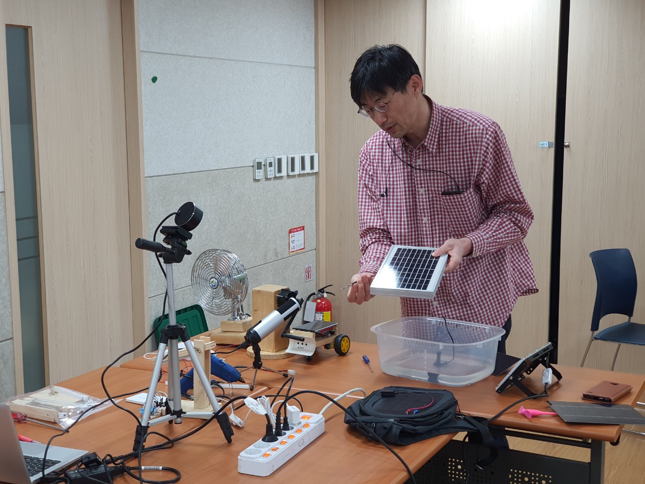 해원샘은 1년간 단국대학교사범대학 부속중학교에서 ‘과학실험반’ 학생들과 함께 합니다. 4월 14일은 첫 시간으로 태양광 적정기술에 대한 실습을 즐겁게 진행했습니다.
