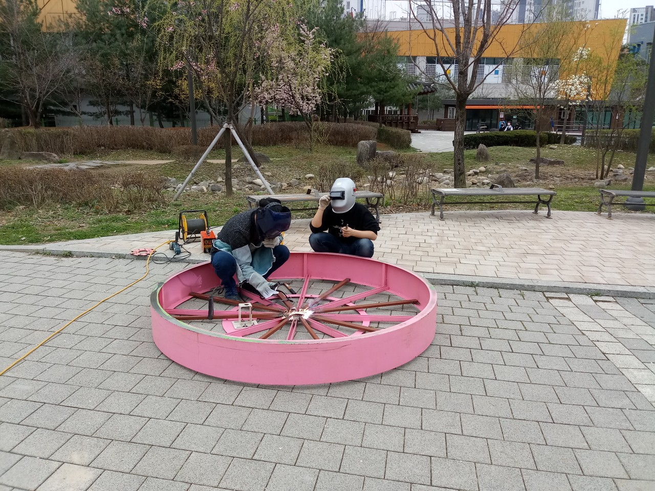 강동 에너지마루에 있는 소리나는 회전무대에 문제가 생겼다고 해서 분해해서 이것저것 수리했습니다! 용접도 하고 색칠도 하고 음향장치도 업그레이드 했습니다. 그런데 이미 낡은 상태라서 이후에는 다시 문제가 생겨서 몇 번더 방문AS를 진행했습니다.