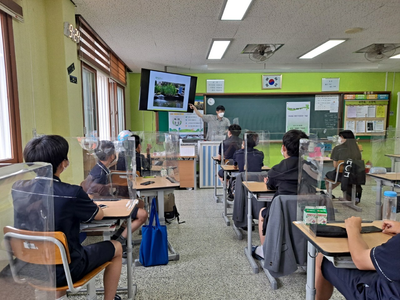 18일 오전에 해원샘은 마포 아현중학교에서 ‘뉴에너자이저’라는 이름으로 재생에너지를 소개하는 수업을 진행했습니다. 중1학생들이었는데, 재미있게 참여했다고 합니다.