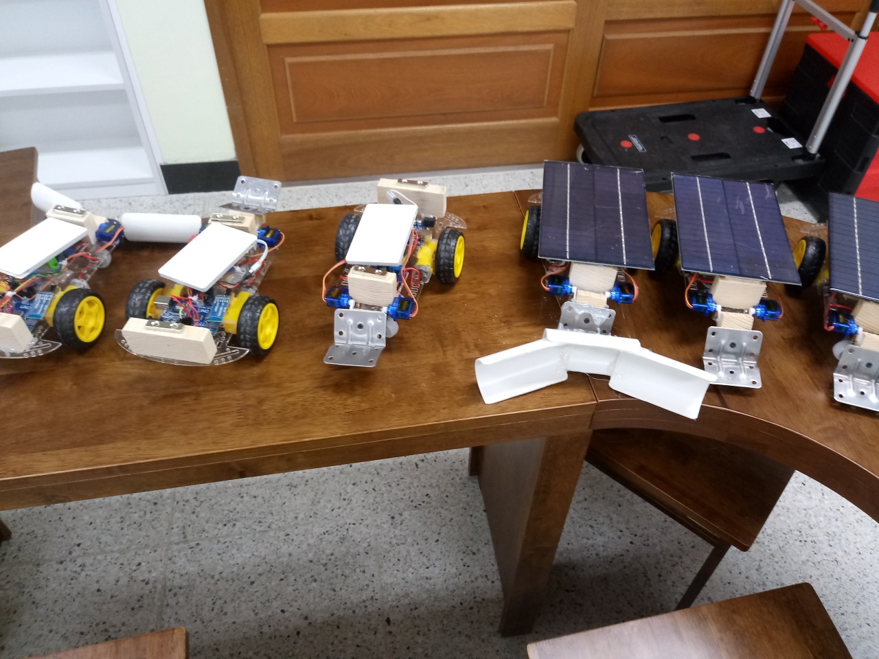 6월 1일 해원샘은 초월고에 세번째로 가서 태양광자동차를 마무리하고 축구도 하고 미션수행도 진행했습니다. 다양한 모양의 움직이는 로더를 자동차에 단 것이 이번 프로젝트 수업의 특징이었습니다. 학생들이 다양한 모양으로 만들었네요^^