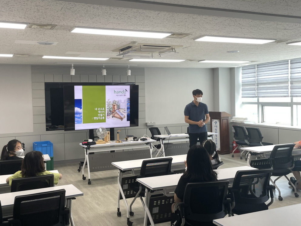 같은 날 오후에는 노원구에 있는 상명고등학교 고3학생들과 적정기술 워크숍을 진행했습니다. 태양광실습, IoT실습을 진행하고, LED스탠드를 만들기도 했습니다. 고3이라 공부에 바쁜 학생들인텐데, 핸즈의 체험이 진로에 도움이 되면 좋겠네요.