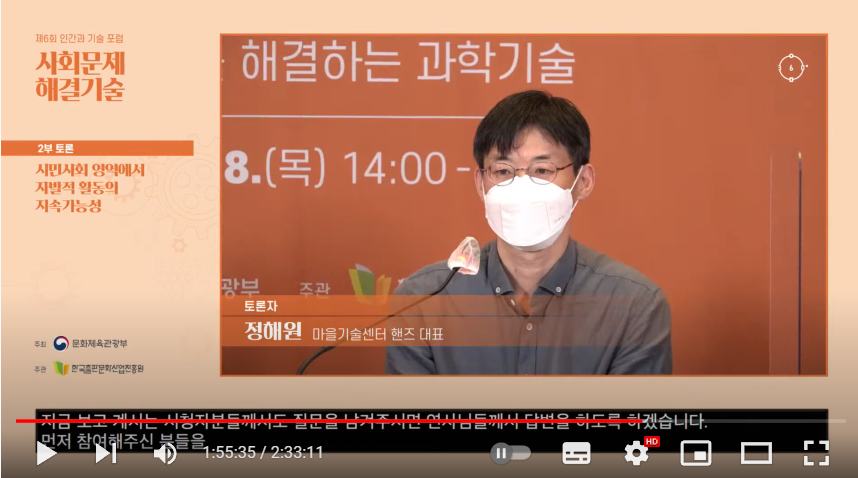 18일 오후에 해원샘은 ‘사회문제해결기술’이라는 주제의 온라인 토론에 참석해서 토론자로 이야기를 나눴습니다. 그 내용은 다음 유튜브 영상에서 확인할 수 있습니다.