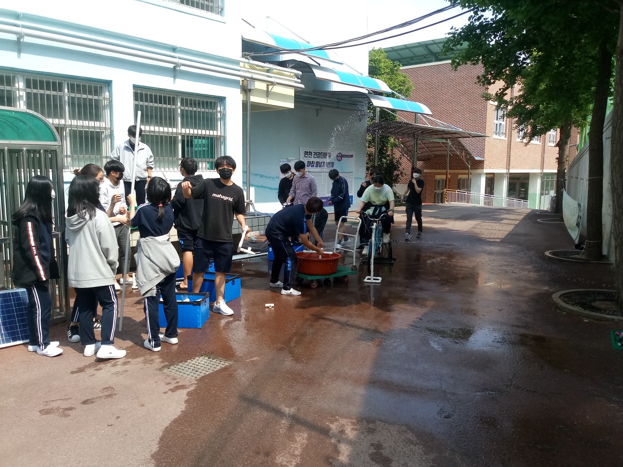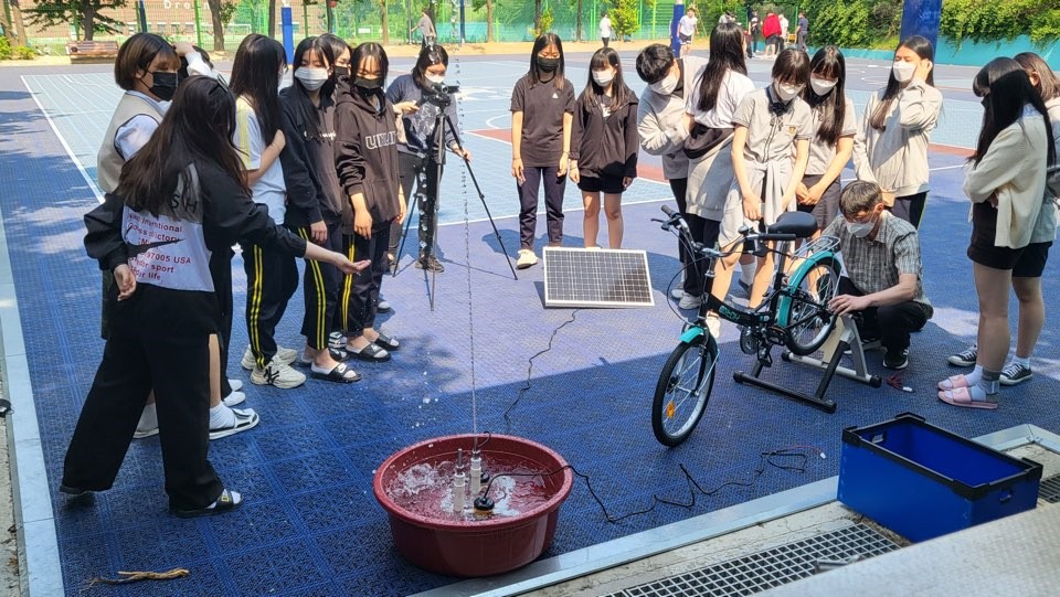 20일에는 생태전환교실로 햇빛분수와 자전거분수, 그리고 줄넘기발전기 실험을 함께 했습니다. 중학생들이 물놀이로 너무 즐겁게 체험을 했던 것이 기억이 남네요. 이 수업도 역대급으로 물장난을 많이 친 수업이었습니다.^^