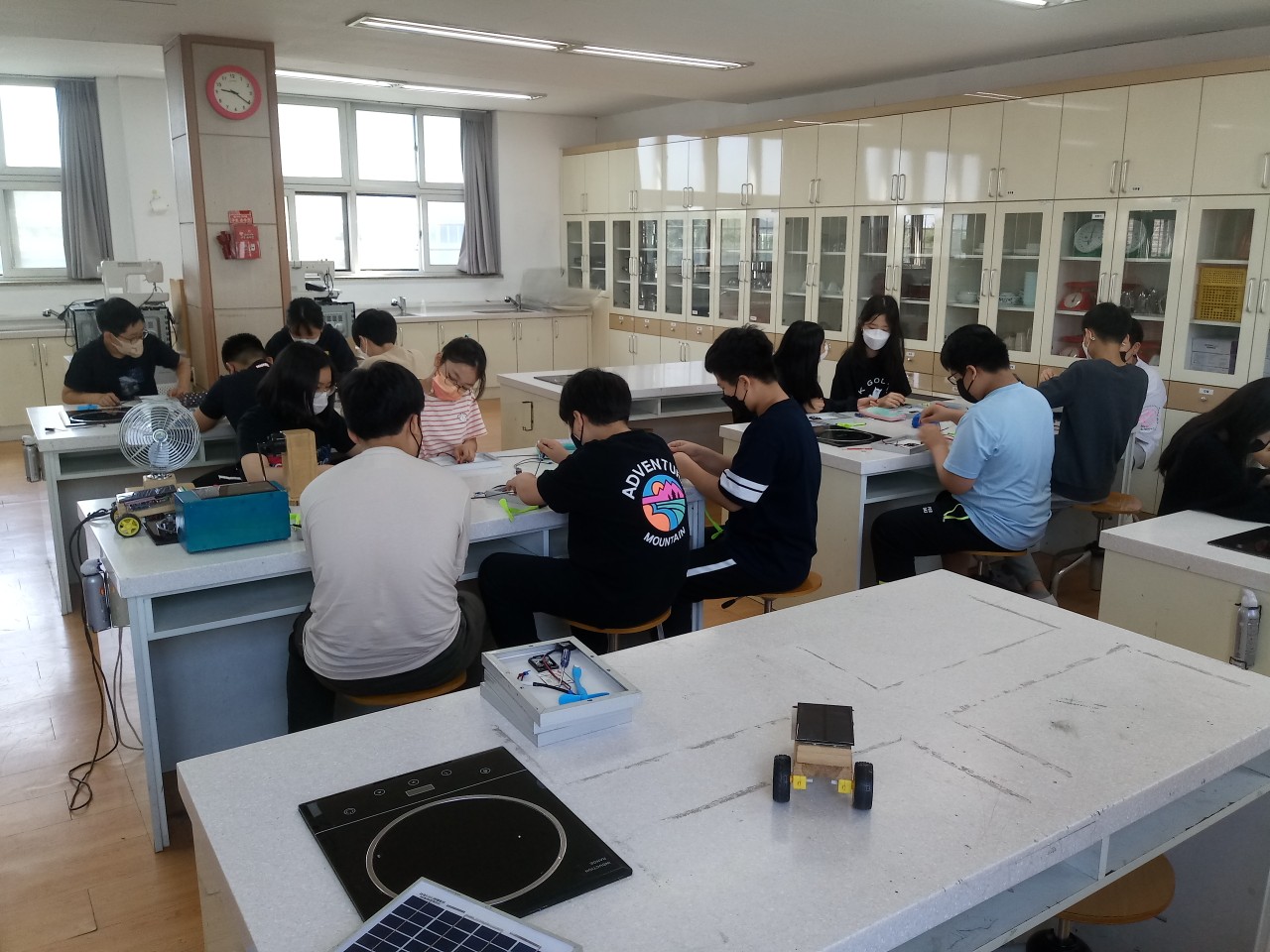 5월에는 11일과 25일 두 번에 걸쳐 과학실험부 수업을 했습니다. 첫 시간에는 아두이노 연결도 해보고 태양광자동차 실습을 했습니다. 역대급으로 태양광자동차로 잘 놀던 친구들이 기억에 남네요. 그리고 25일에는 전 시간에 준비했던 LED를 이용해서 LED스탠드를 만들었습니다.