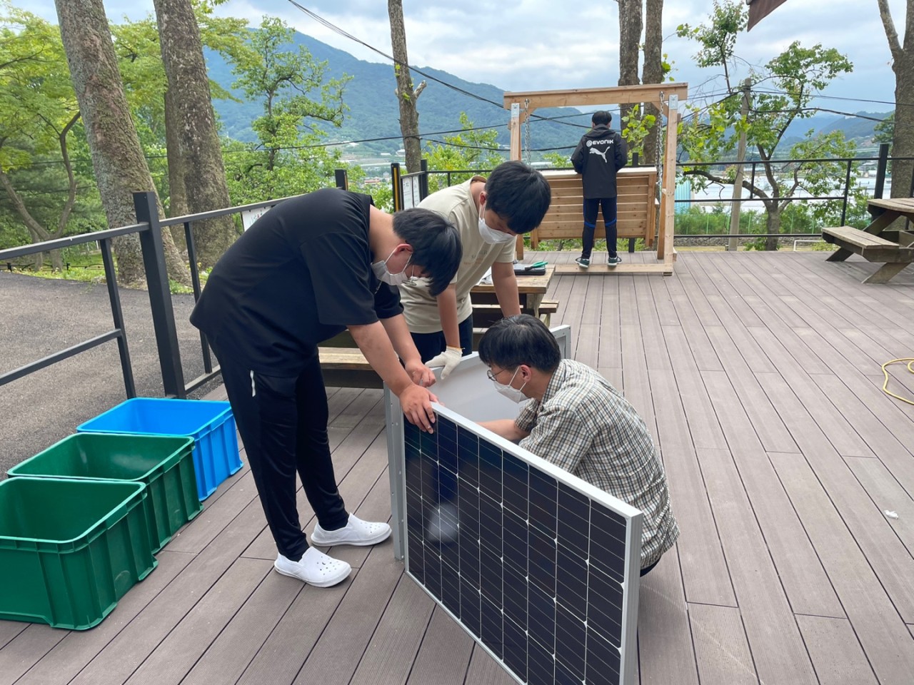 드디어 30일 추풍령중학교 만들기 프로젝트가 시작되었습니다. 아침 일찍 정현샘과 함께 서울에서 출발해서 미리 준비학고 역할을 나눠서 테이블 태양광장치, 이동식태양광장치, 텃밭태양광, 태양광가로등, 안내판작성 등을 진행했습니다. 고은샘도 핀란드에서 온라인으로 참여해서 도움을 주었구요. 이날 목표까지 다 진행하고 서울로 올라왔습니다.