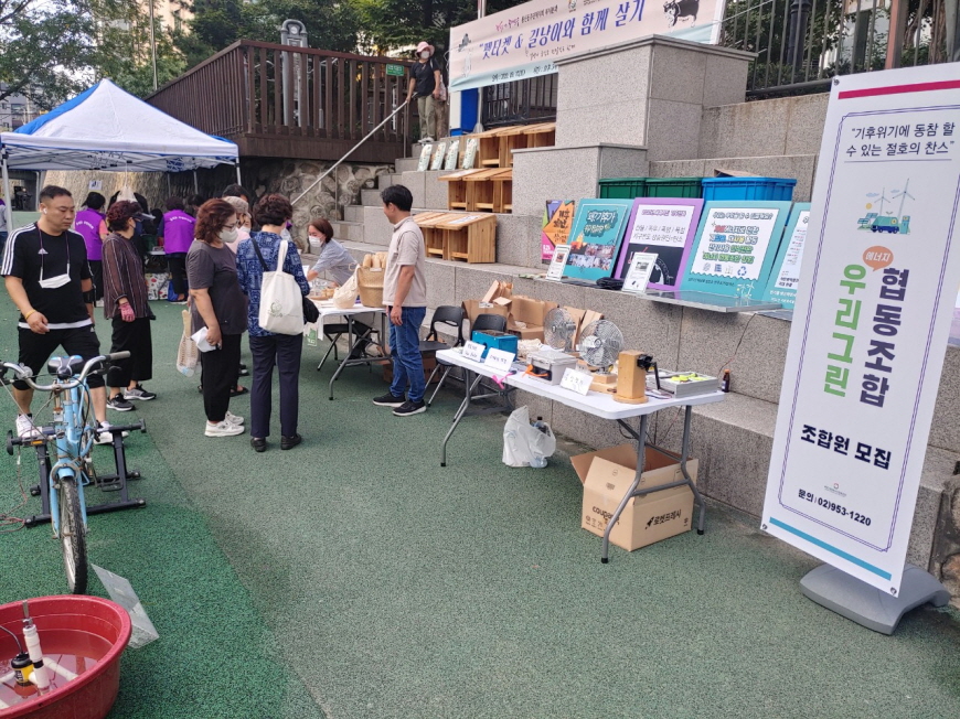 17일에는 용신동 우리그린협동조합의 캠페인에 함께 했습니다. 에너직교구를 전시하고 시연을 했는데, 오가는 시민이나 학생들이 관심을 보여 재생에너지에 대해서 소개할 수 있는 시간이었습니다.