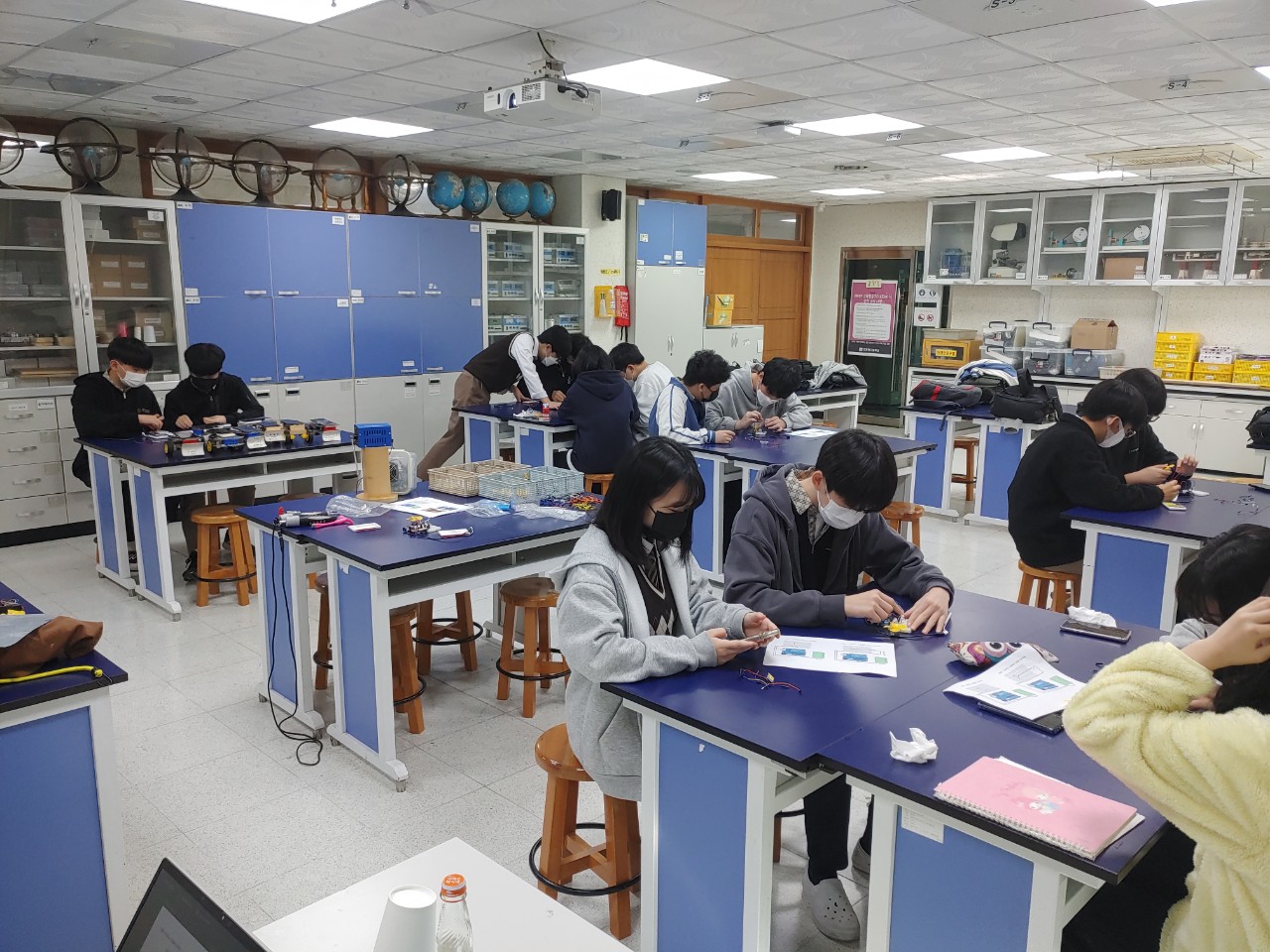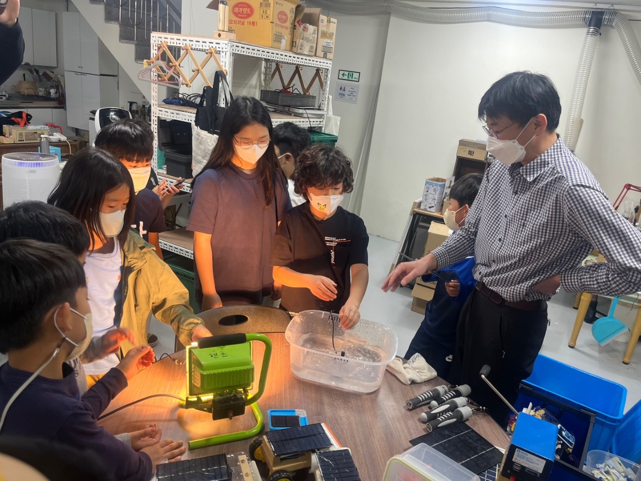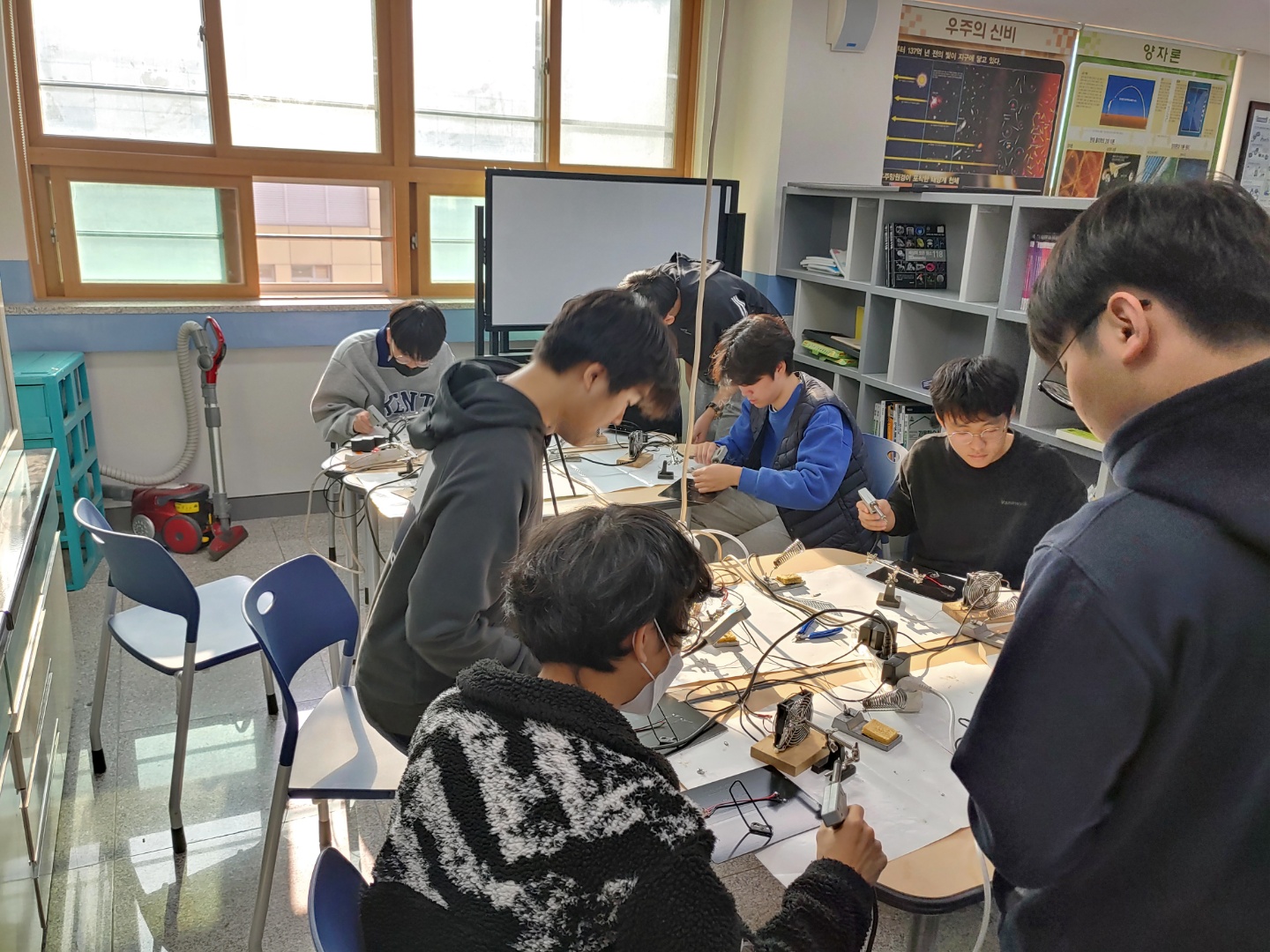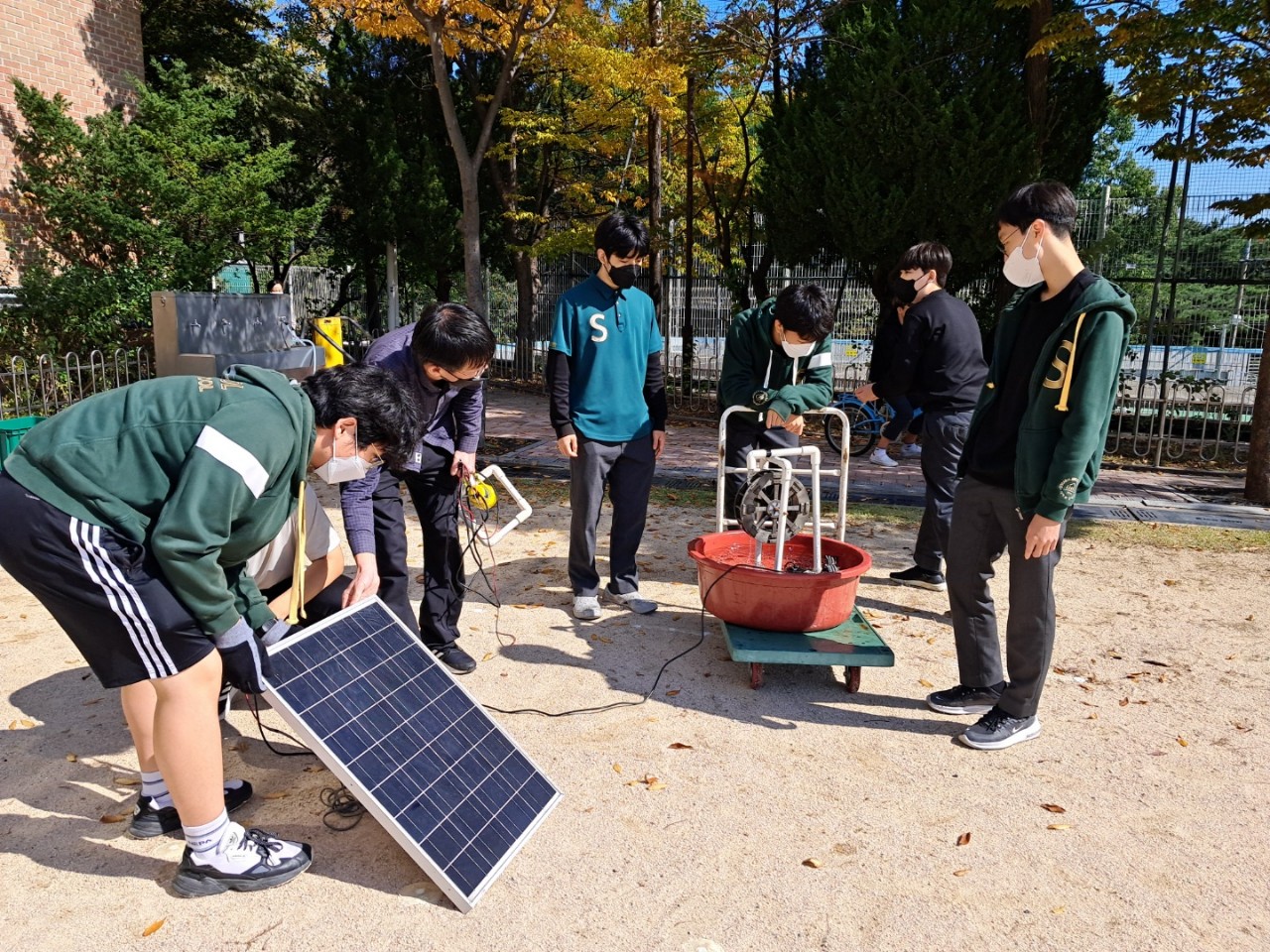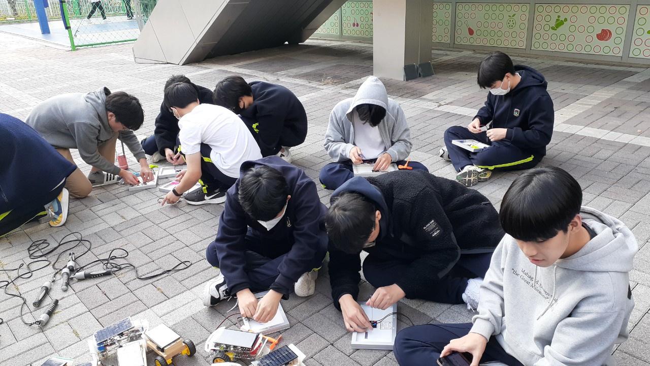 28일 오후에는 연송고등학교로 이동해서 두 동아리 친구들과 태양광충전기과 다양한 태양광실험을 진행했습니다.