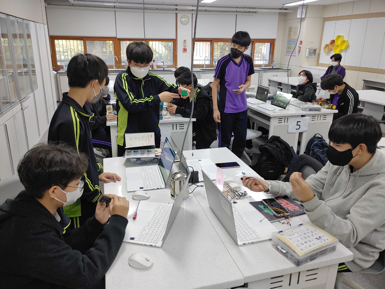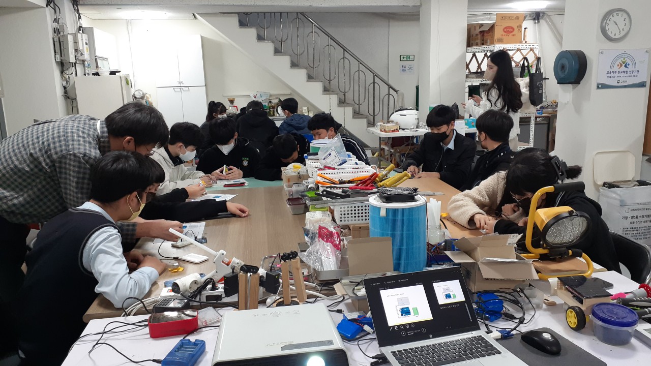 27일 오후에는 윤중중학교 동아리수업을 마무리했습니다. 모둠별 만들기를 진행했고, 1년을 돌아보며 수업을 마쳤습니다.
