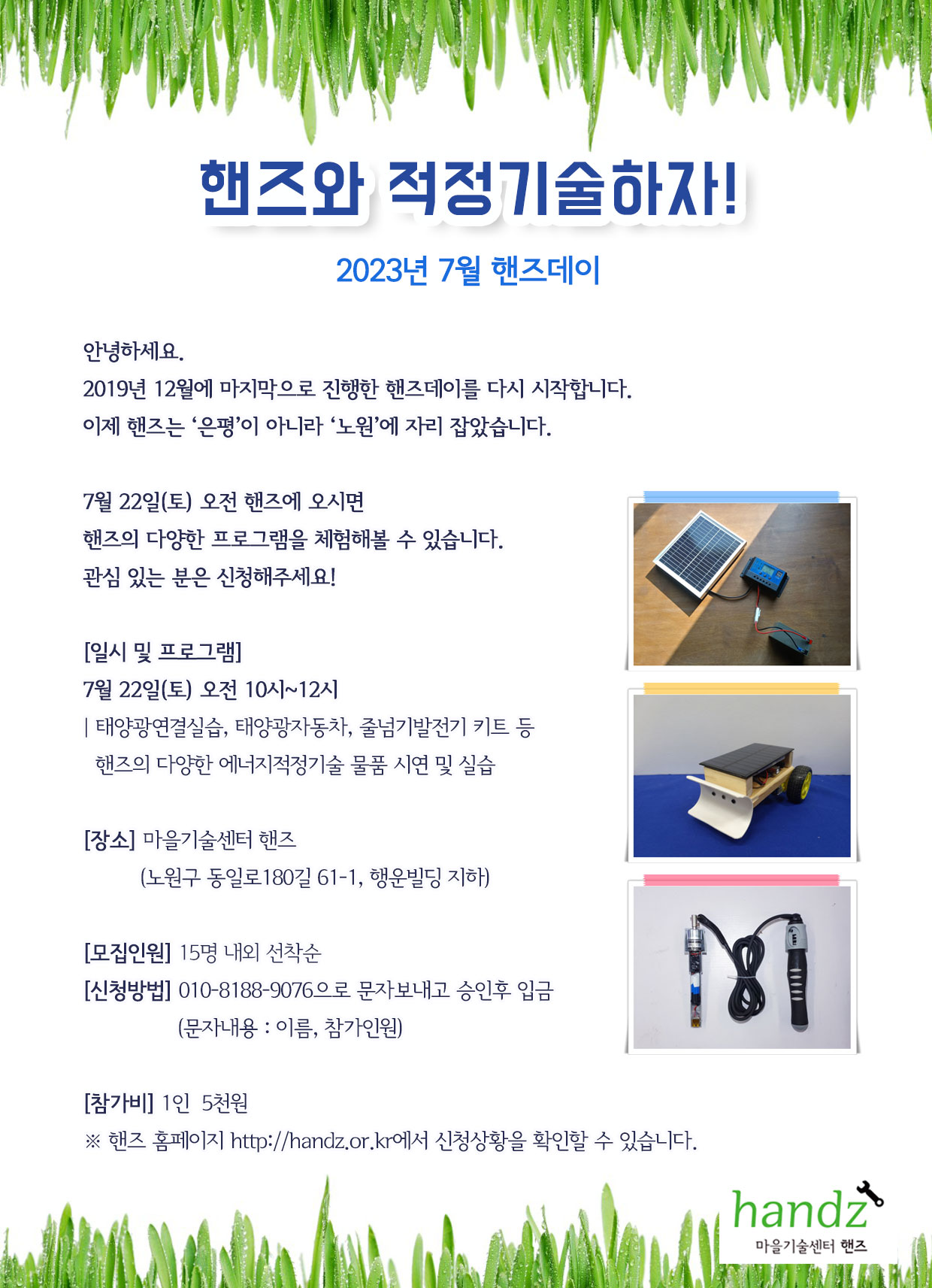 7월 22일(토) 오전 핸즈에 오시면 핸즈의 다양한 프로그램을 체험해볼 수 있습니다.