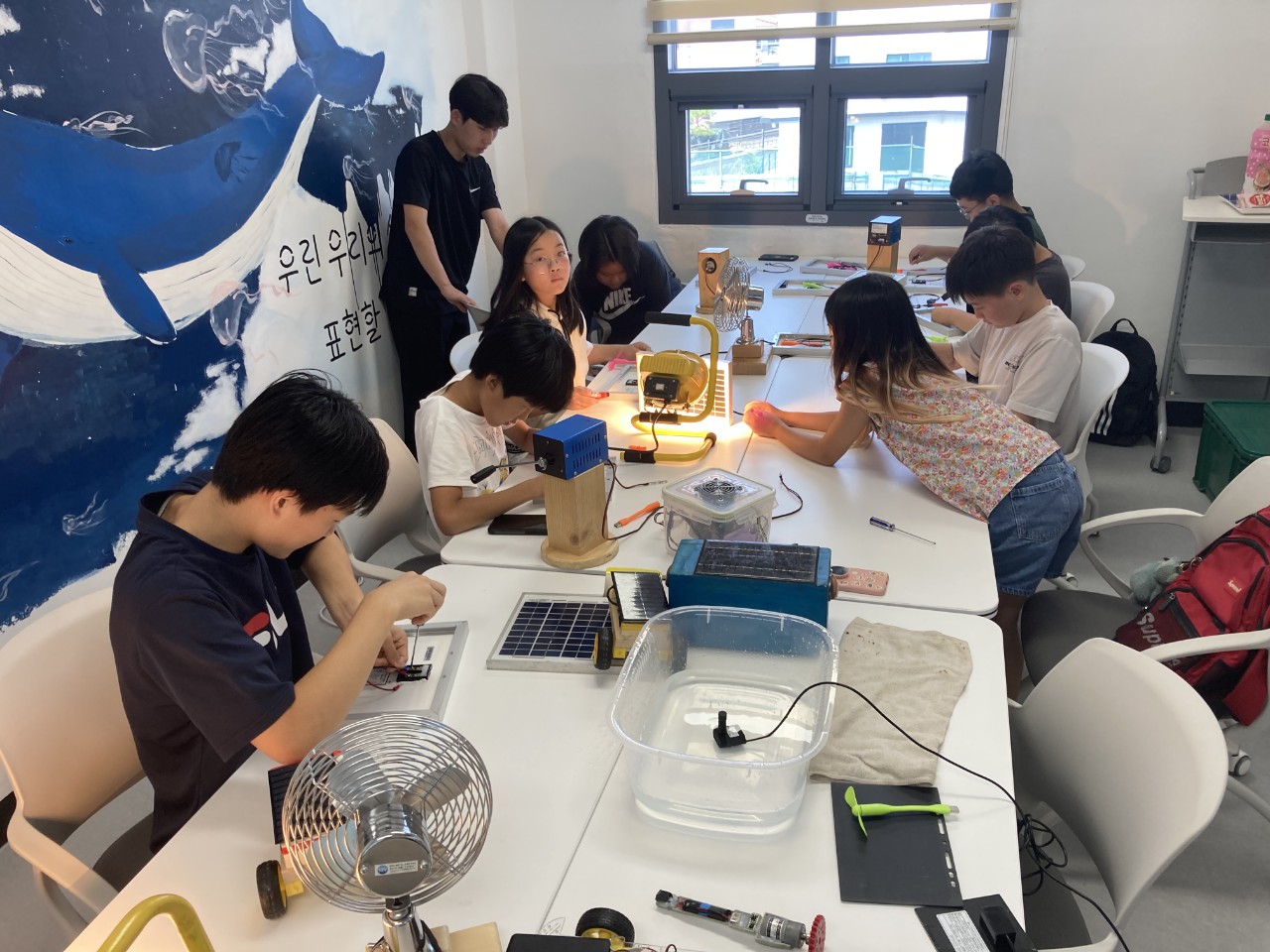 7월 25일 오후에는 양평서부청소년문화의집에서 초등학생들과 적정기술과 에너지수업을 함께 했습니다. 인턴십에 참여한 한주가 함께한 첫수업이 되었네요. 태양광실습과 햇빛분수, 자전거분수, 태양광자동차까지 실습위주로 에너지이야기를 전달했습니다. 이 친구들은 8월초에 다시 만나기로 했답니다.