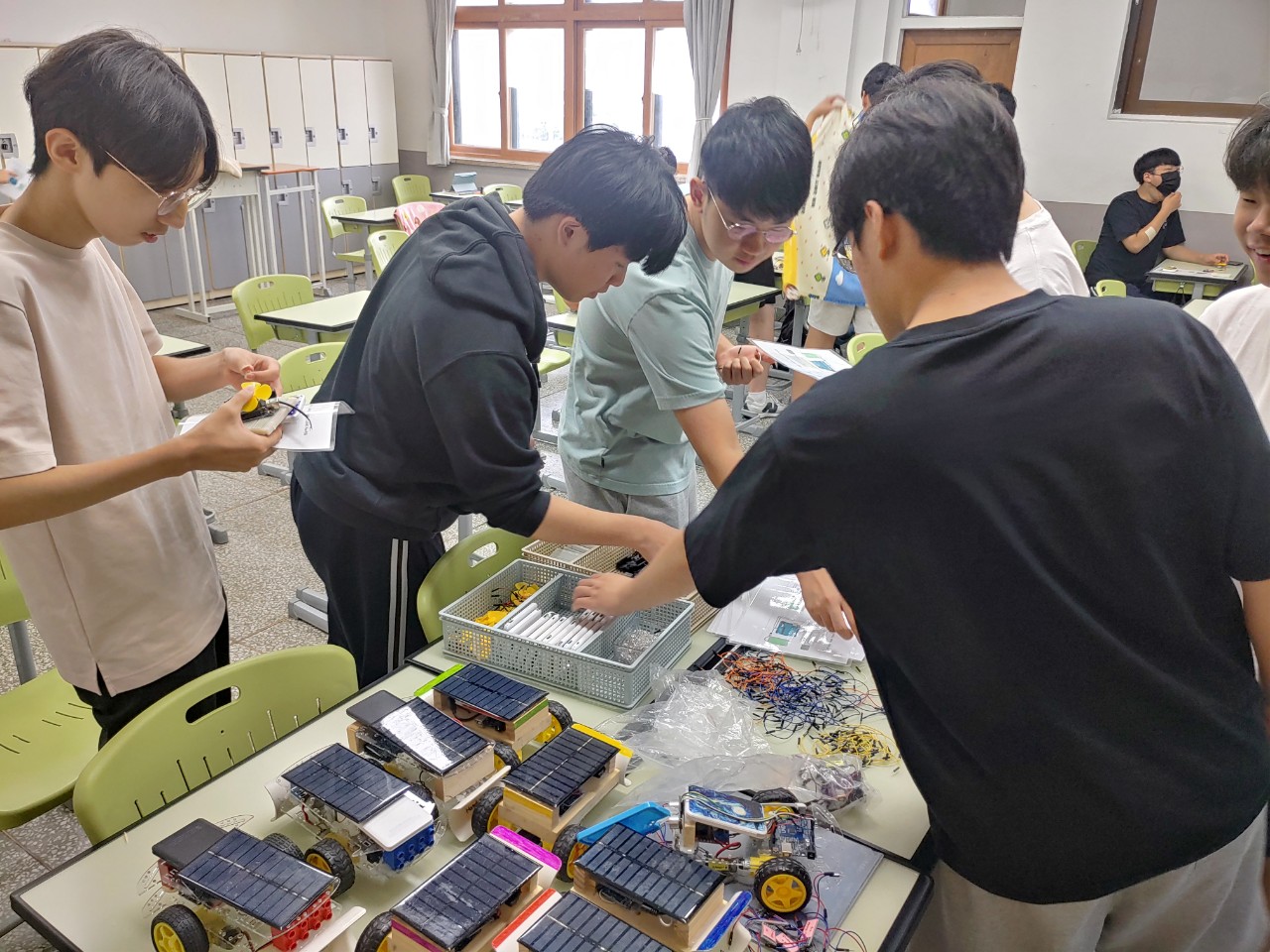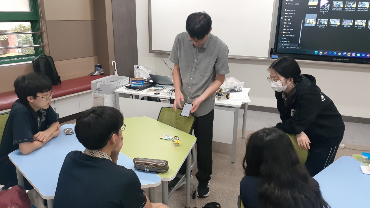 21일에는 별샘과 남춘천중에 가서 과학동아리 친구들과 IoT모니터링 장치 만들기를 함께 했습니다. 인터넷 연결이 잘 안되어 고생하기도 했지만 그래도 어느 정도 연결을 성공한 친구들이 나와서 다행이었습니다. 간단히 태양광자동차 실습도 해보고 수업을 마무리했답니다.