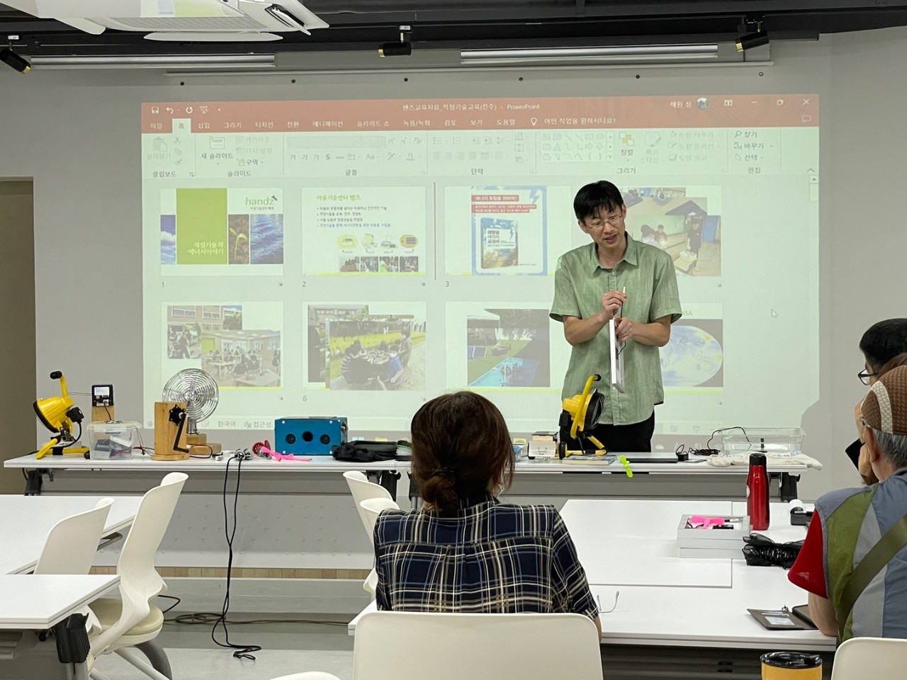 24일에는 전주시에너지센터에서 태양광교육을 두 시간동안 진행했습니다. 전주는 친근한 도시라서 즐겁게 다녀왔네요. 그동안 에너지교육을 하며 고민하는 내용도 전달하고 여러가지 키트를 통한 교육도 진행했답니다. 이후 심화과정을 이어서 9월에 진행하기도 했습니다.