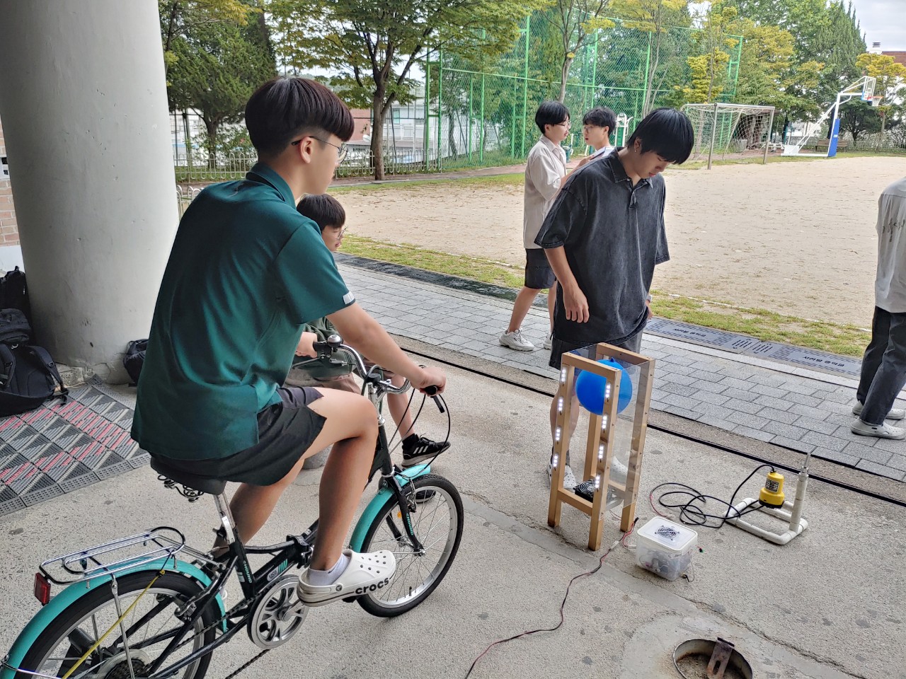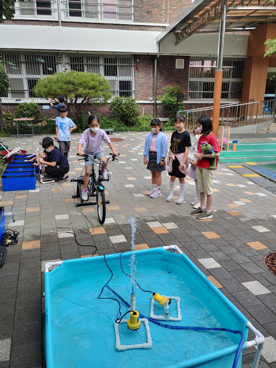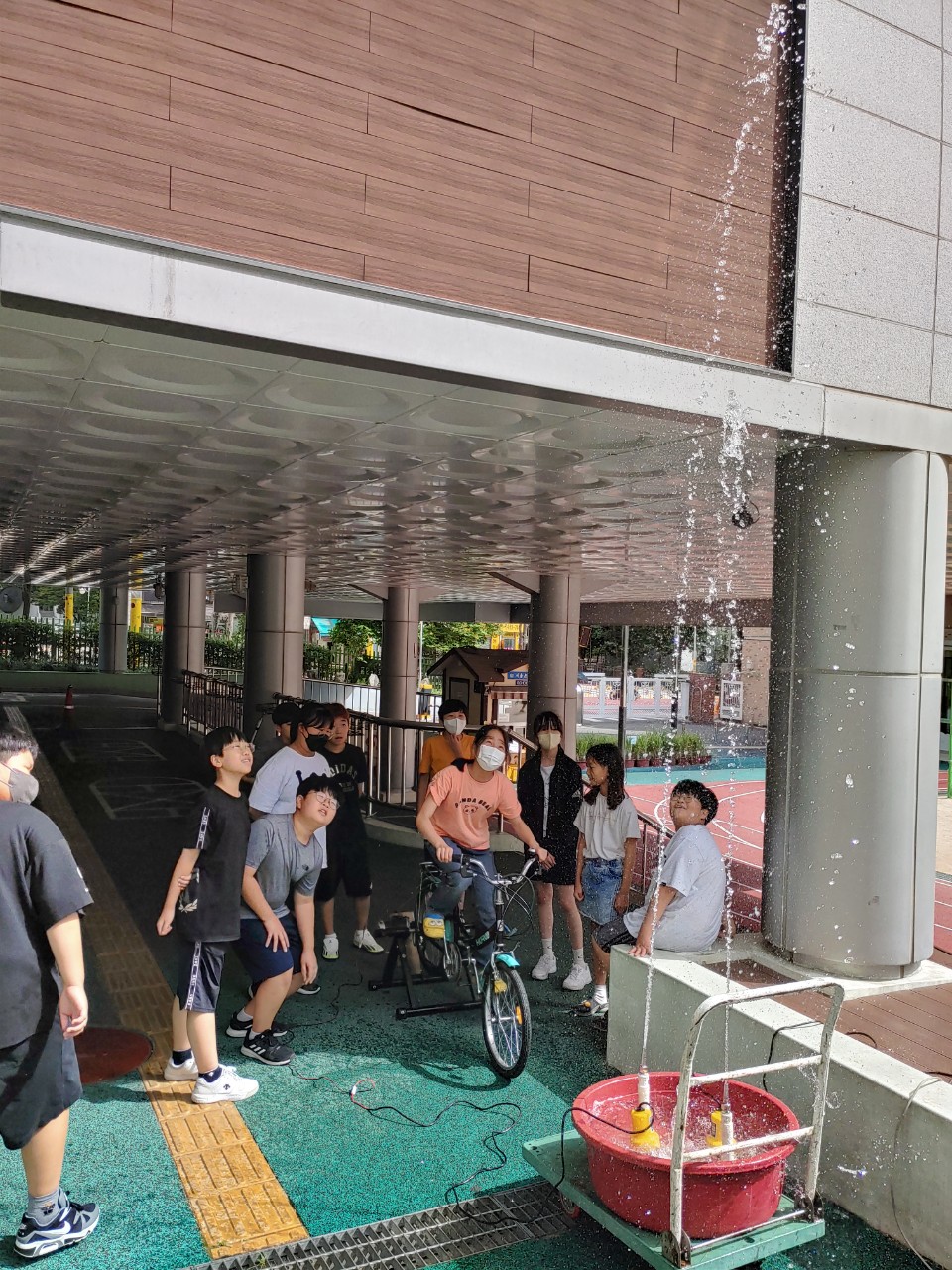 14일 오후에는 노원 온곡초에서 햇빛분수와 자전거분수 실습을 했습니다. 활동적인 수업이라 학생들이 잘 참여해주었고, 별샘도 함께 해서 잘 진행할 수 있었습니다.