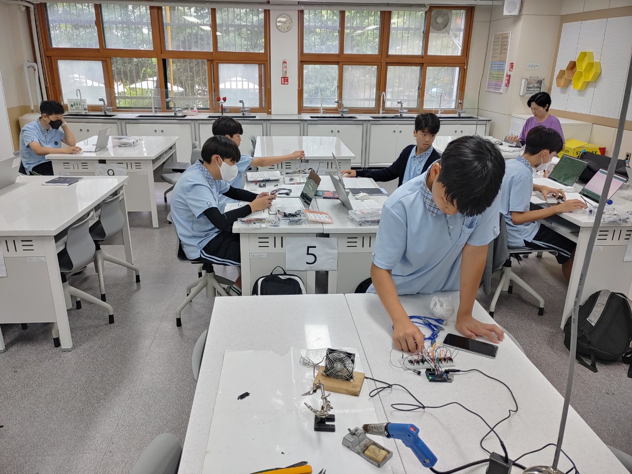 26일과 27일은 서울대 평생교육원 프로그램으로 금천구 가산중에서 적정기술 수업을 3차시씩 이틀 동안 진행했습니다. 거리가 멀어 조금 고생하기도 했네요. 첫날은 제가, 둘째날은 정현샘이 진행을 했습니다. 남학생들만 이 수업을 선택했는데 활발하게 잘 참여해주었습니다.