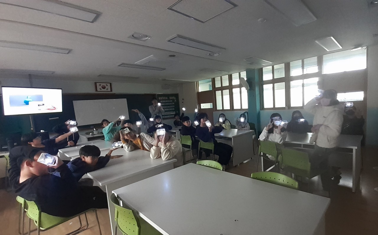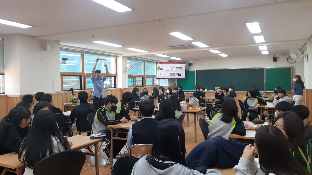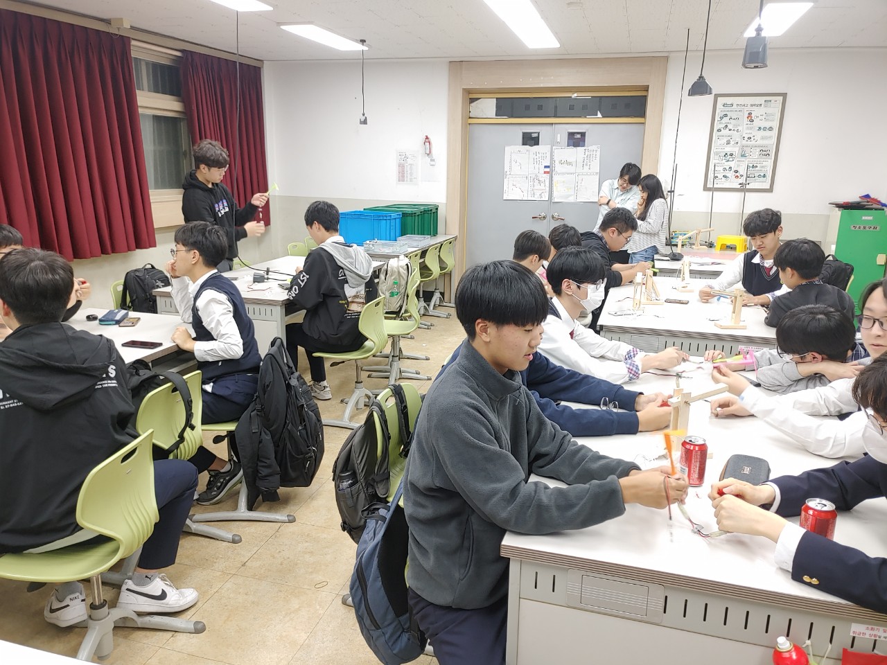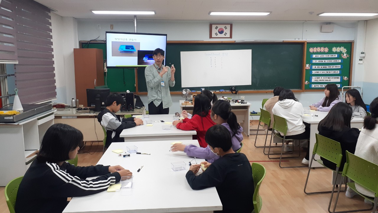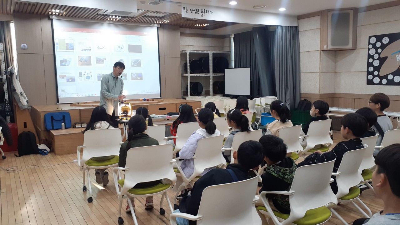 25일에는 매년 진행하는 에너지특강을 국사봉중학교에서 진행했습니다. 이번에는 음악실에서 진행했는데 공간이 넓어서 좀더 자유롭게 체험할 수 있었습니다. 강의 적게 하고 거의 체험위주로 즐겁게 진행하니 학생들의 참여도가 더 높아보였습니다.