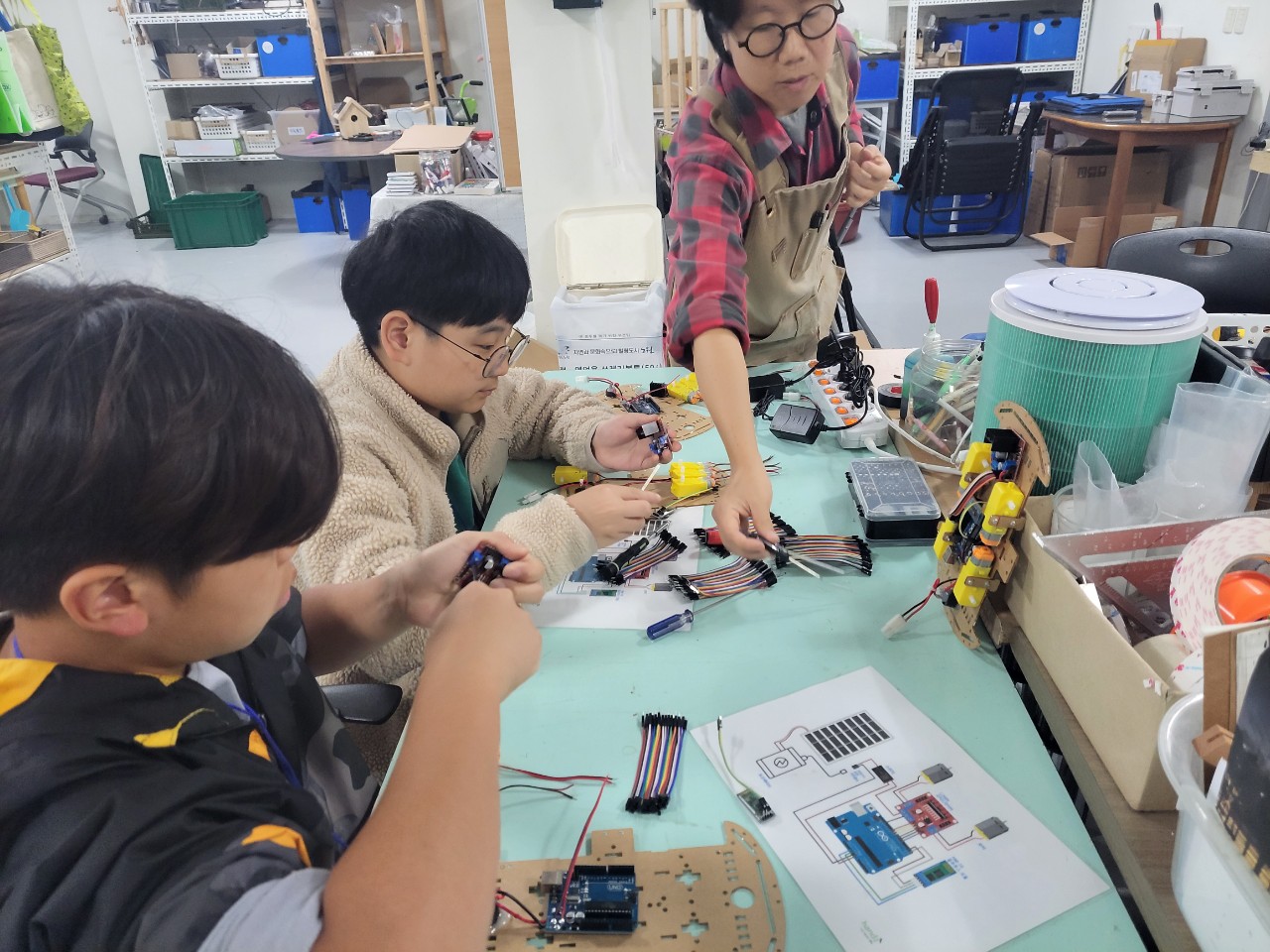 28일과 29일은 공릉지역 초등학생들과 직업체험을 진행했습니다. 토요일에는 학생들이 몇 군데를 다니며 관심있는 분야를 찾아보고, 29일에는 두 명의 학생이 핸즈에서 빠른버전 태양광자동차 만들기를 함께 했습니다. 간식도 같이 먹고 이런저런 이야기를 나누며 즐겁게 진행했습니다. 별샘이 멘토로 학생들을 많이 챙겼습니다.