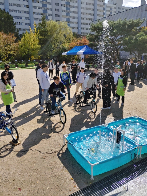 18일에는 드디어 강서고에서 햇빛분수와 자전거분수 체험을 진행했습니다. 그동안 날씨 때문에 계속 미뤘는데, 다행히 해가 나서 잘 진행할 수 있었습니다. 아주 덥지는 않아 1학기 체험 물장난이 심하지는 않았지만, 자신의 에너지를 마음껏 발산할 수 있는 시간이었습니다.