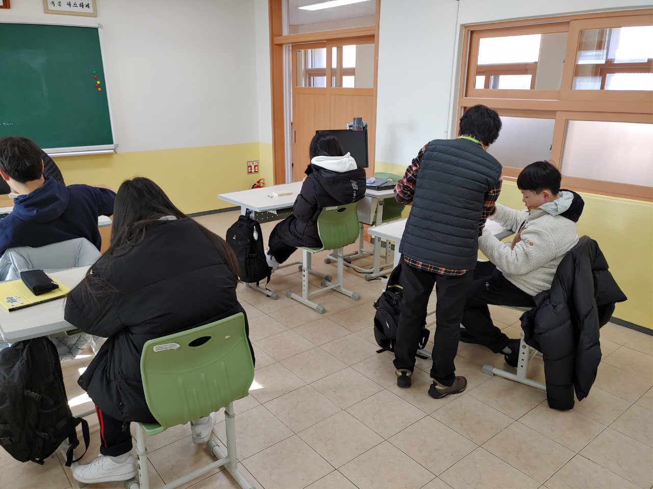 11일과 12일에는 전주기전중에서 아홉반 수업을 진행했습니다. 별샘도 함께 내려가서 동시 수업으로 진행을 했고, 둘째날에는 1학년 대상으로 특강을 짧게 진행하기도 했네요. 학생들도 잘 참여해주었습니다. 기전중학교가 미성샘 모교라서 약간 특별한 기분이 들기도 했고, 비가 와서 구경을 못했지만 맛있는 콩나물국밥도 먹을 수 있는 기회였습니다.