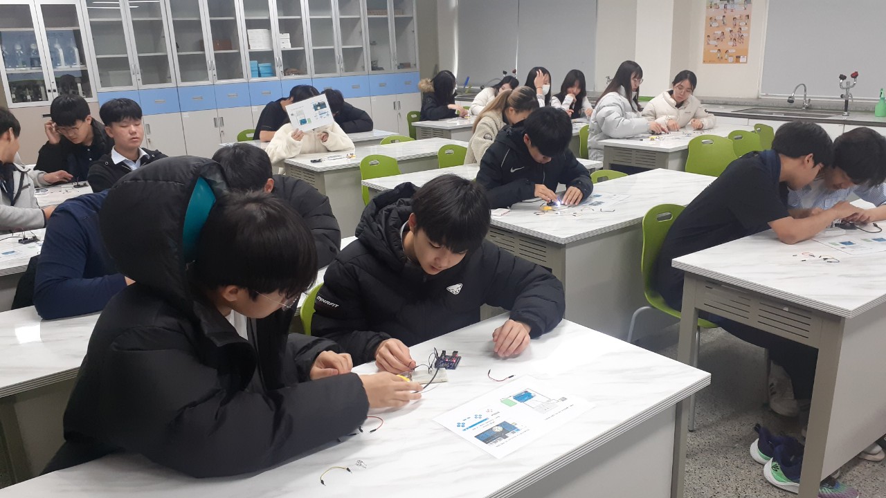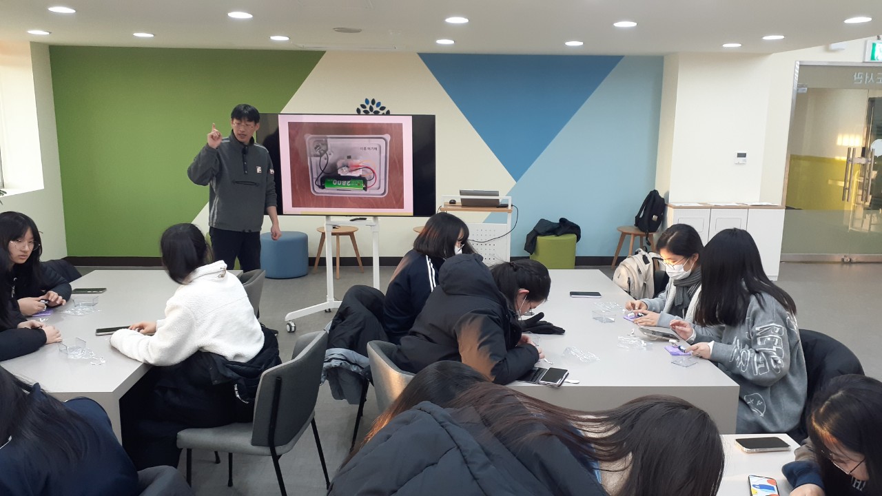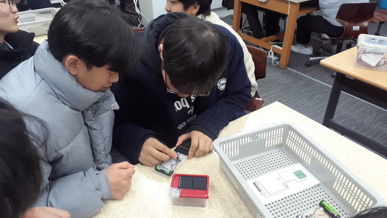 강서고 마지막 수업을 진행했습니다. 기말고사를 앞두고 있어 다소 어려움이 있었네요. 햇빛저금통 연결실습을 하고, 그동안 수업의 의미를 전하며 마무리했답니다. 이렇게 한 학기 수업을 마무리했습니다.