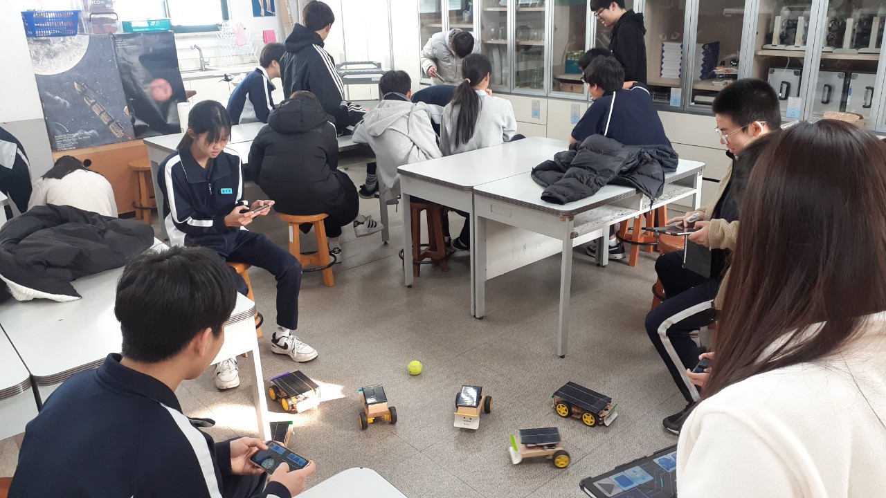 18일부터 4일 동안 신연중학교 2학년 학생들과 4차시씩 다섯반 수업을 진행했습니다. 시간여유가 있어 줄넘기발전기 실습, 아두이노 실습, 아두이노 연결도 해보고, 기본수업이 태양광실습과 태양광자동차 실습까지 모두 진행했습니다. 3일차에는 별샘과 범준샘이 함께 진행하기도 했습니다.