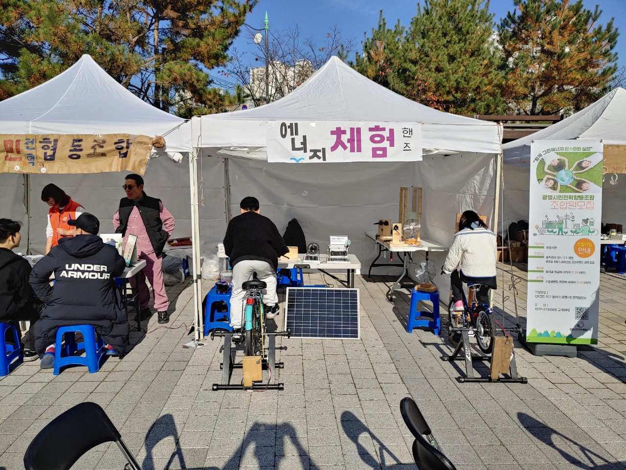 15일 토요일에는 광명에서 에너지부스를 운영했습니다. 광명은 ‘탄소중립과 재생에너지’에 관심이 많은 지자체로 다양한 활동을 하는데 이 날은 기후주간을 마무리하는 행사였습니다. 날이 쌀쌀해서 많은 분들이 오지는 않았지만, 여러분들께 재생에너지를 소개할 수 있는 시간이었습니다.